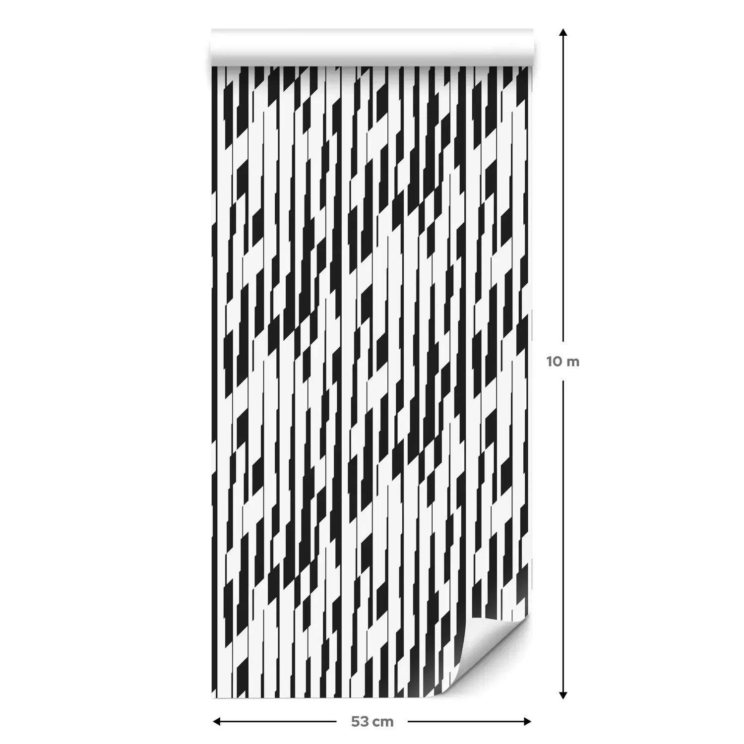 Eine Standard-Tapetenrolle hat die Maße 0,53 m x 10 m und deckt eine Wandfläche von etwa 5 m² ab.