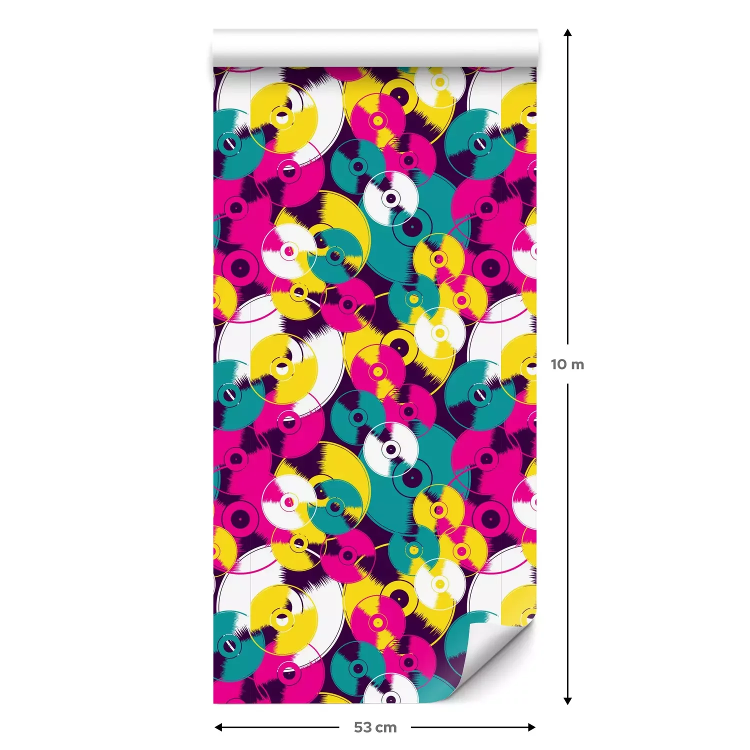 Eine Standard-Tapetenrolle hat die Maße 0,53 m x 10 m und deckt eine Wandfläche von etwa 5 m² ab.