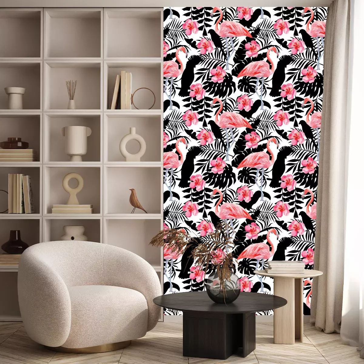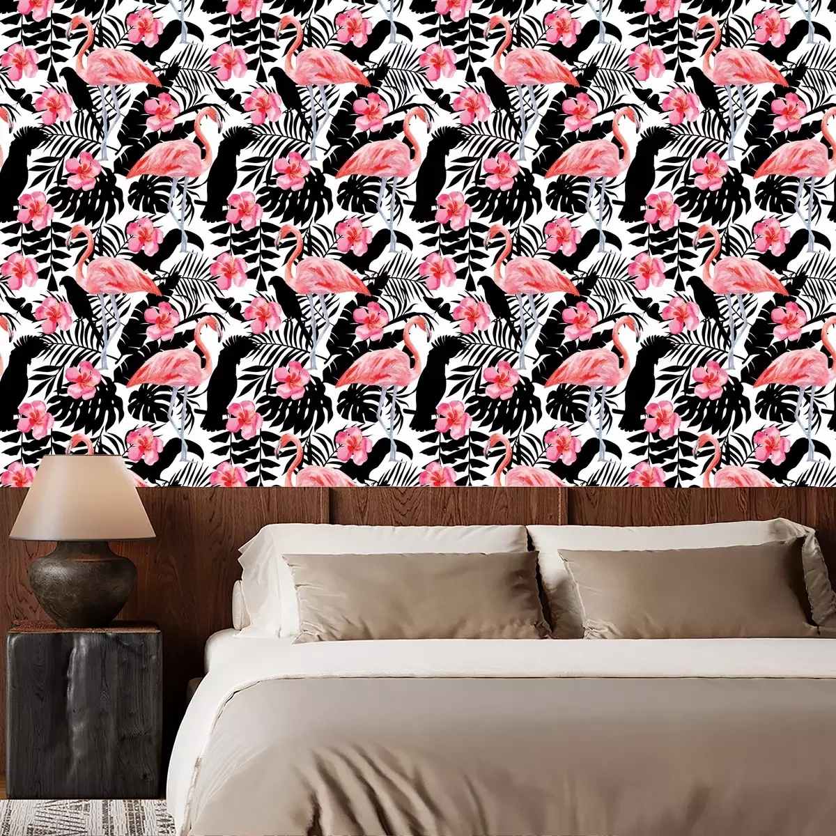 Rosa Flamingos mit Streifen im HintergrundTapete