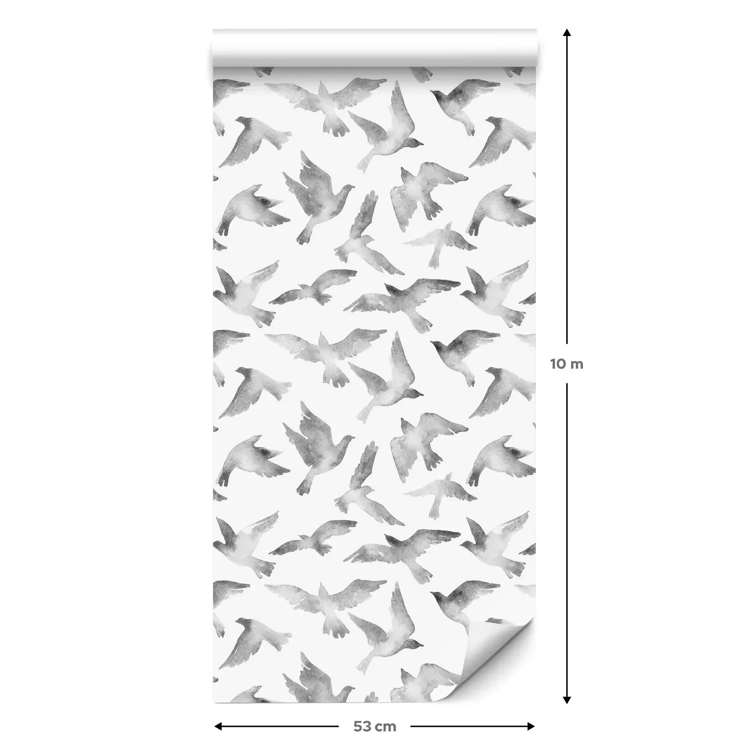 Eine Standard-Tapetenrolle hat die Maße 0,53 m x 10 m und deckt eine Wandfläche von etwa 5 m² ab.