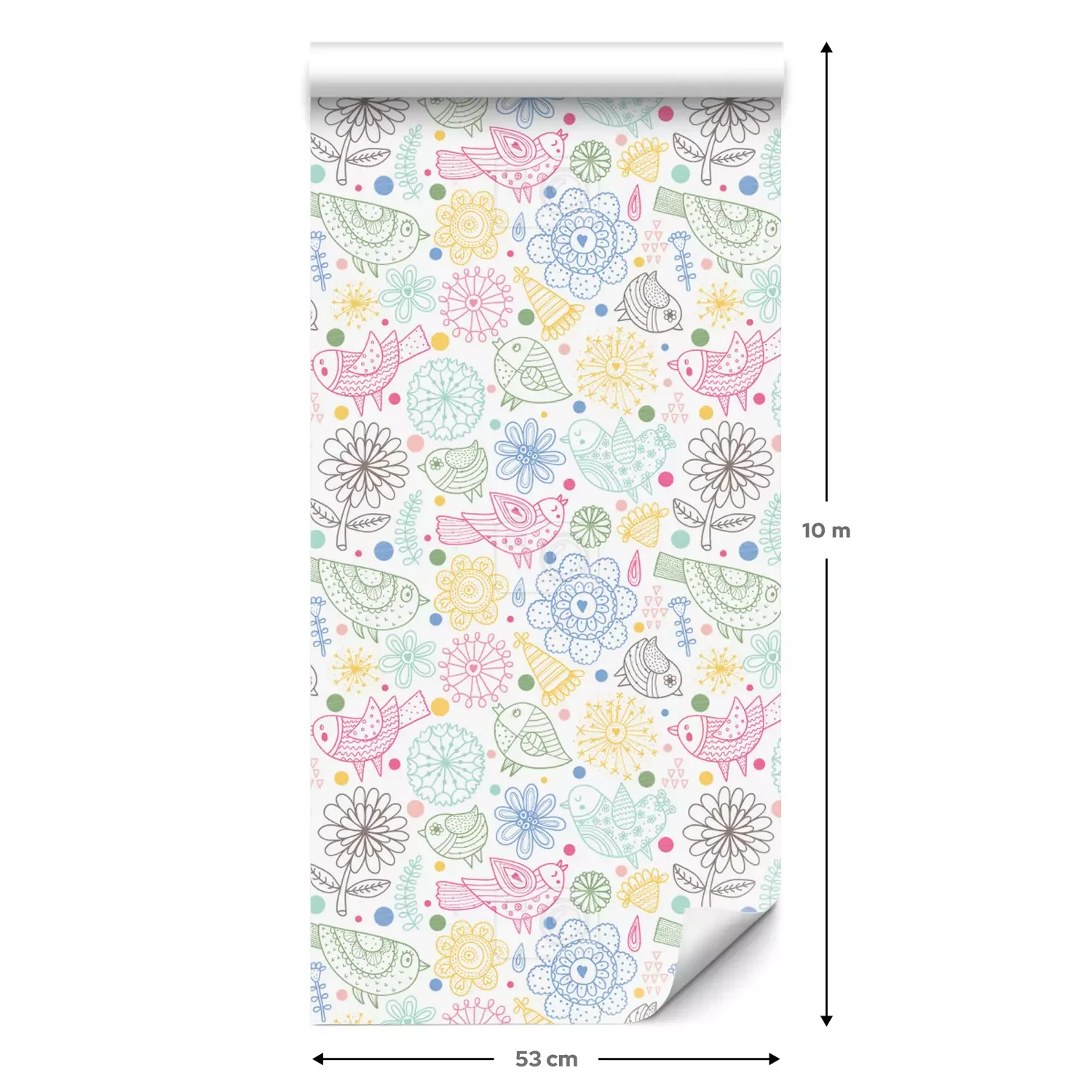 Eine Standard-Tapetenrolle hat die Maße 0,53 m x 10 m und deckt eine Wandfläche von etwa 5 m² ab.