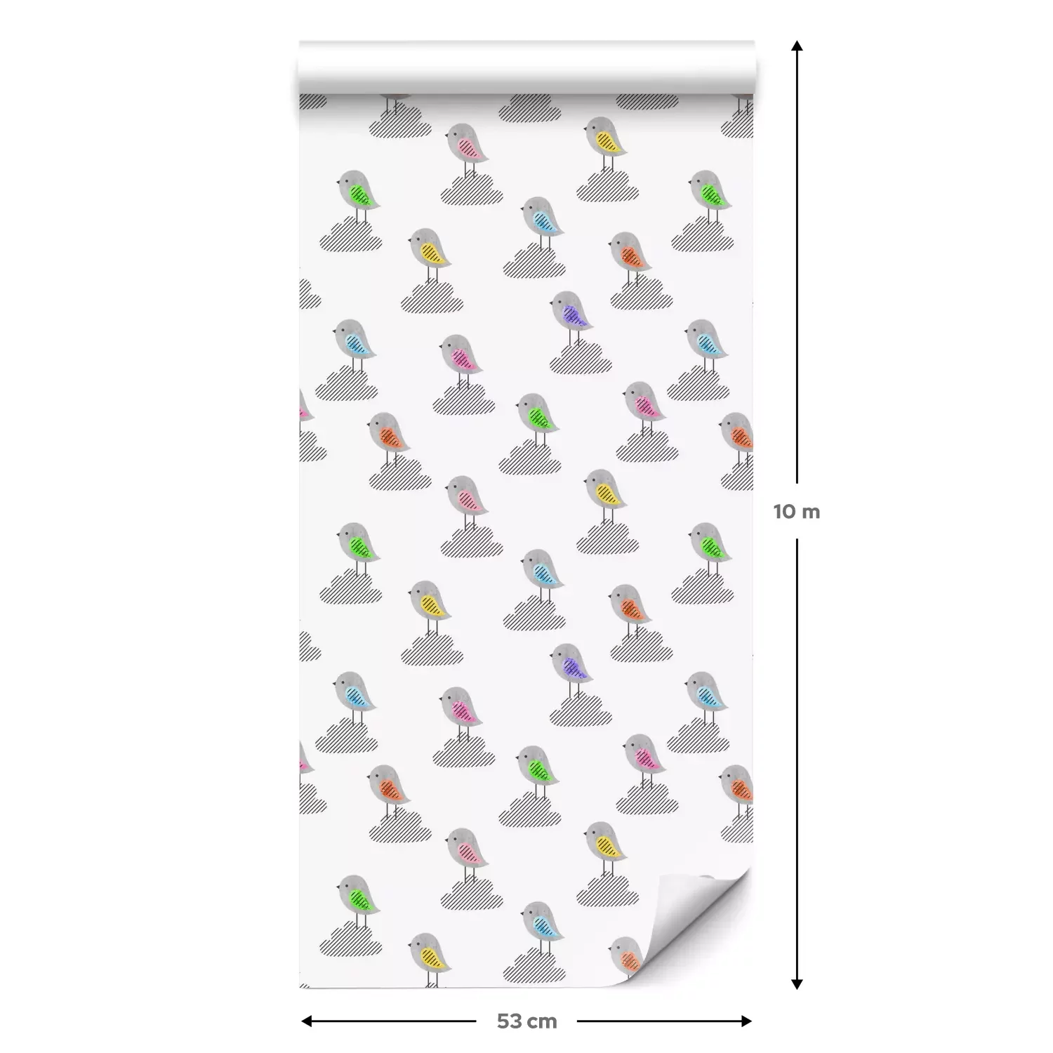 Eine Standard-Tapetenrolle hat die Maße 0,53 m x 10 m und deckt eine Wandfläche von etwa 5 m² ab.