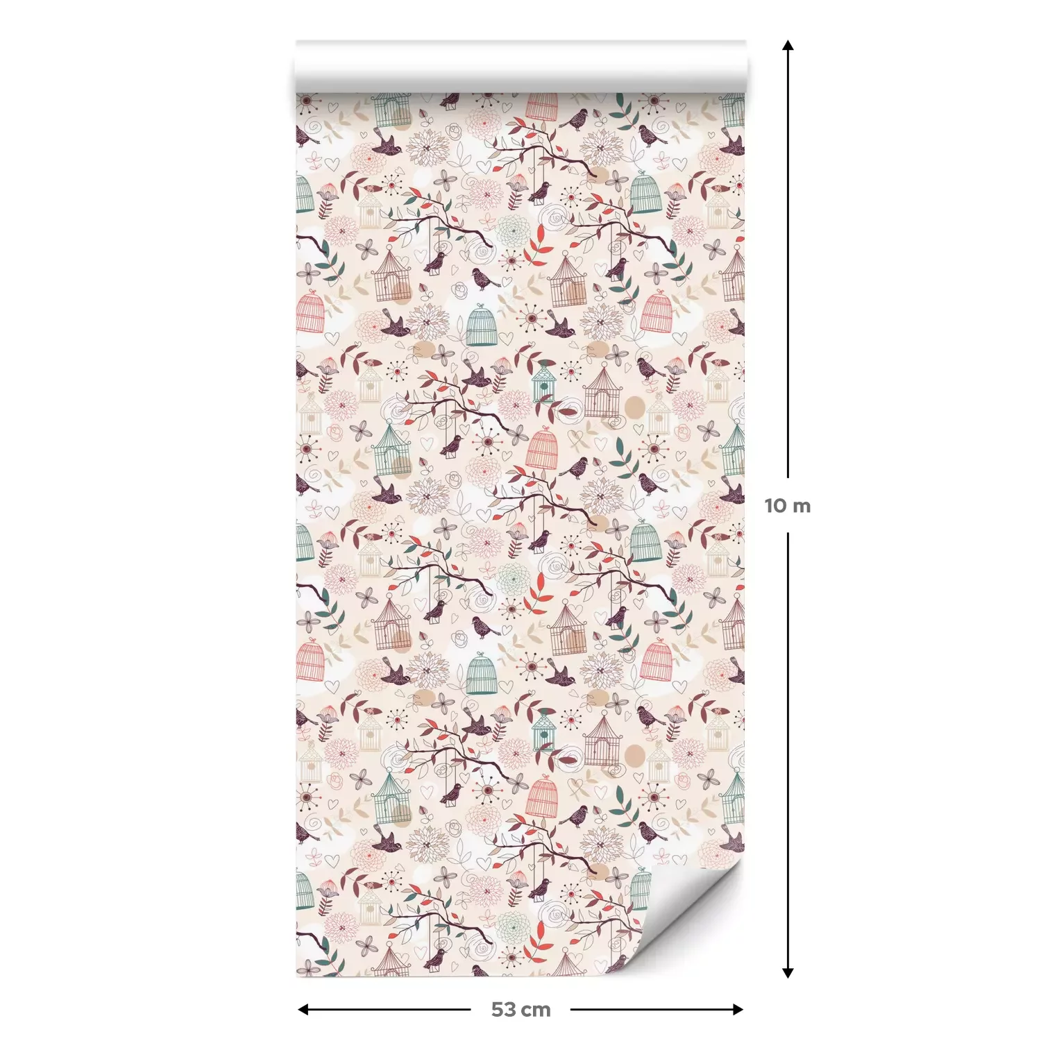 Eine Standard-Tapetenrolle hat die Maße 0,53 m x 10 m und deckt eine Wandfläche von etwa 5 m² ab.