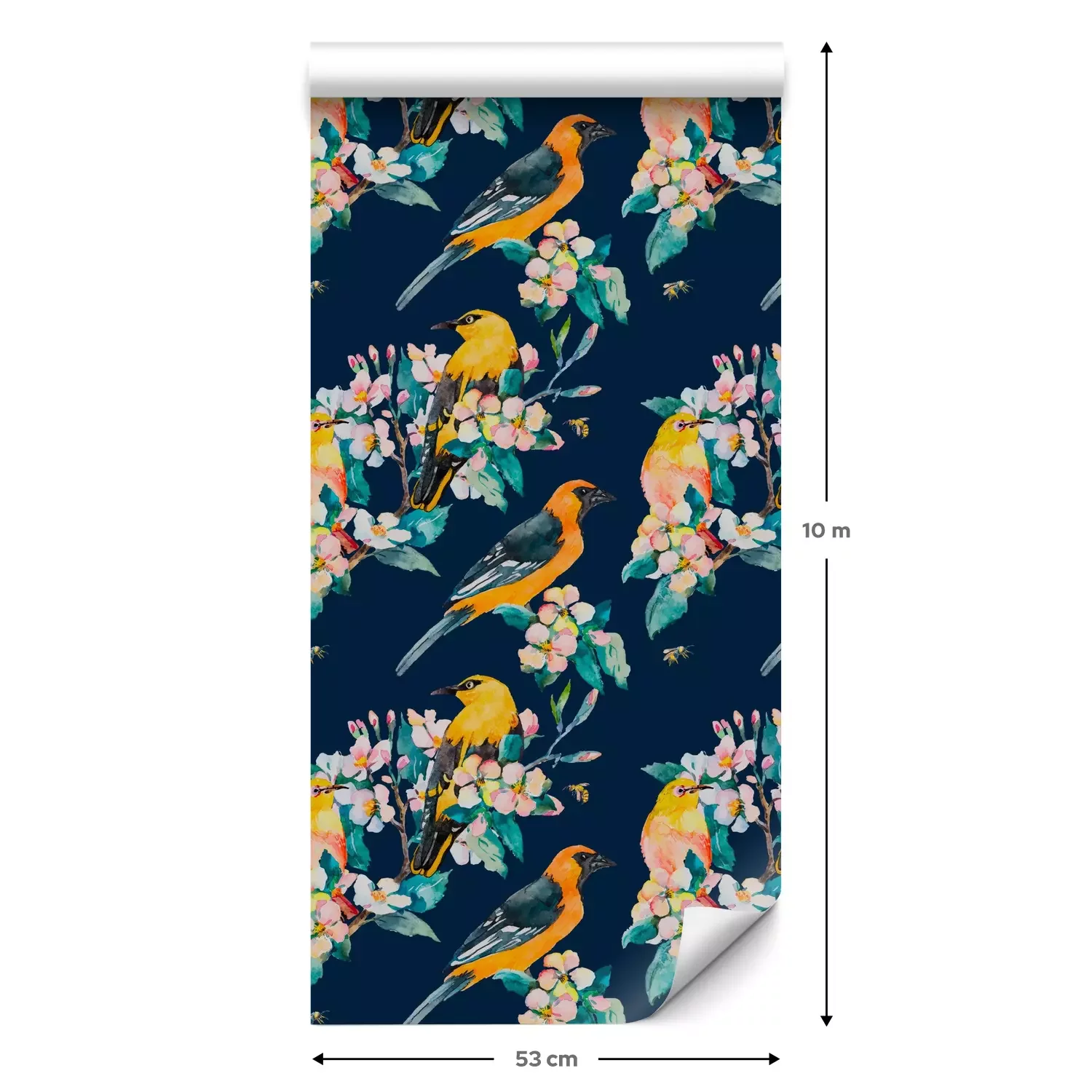 Eine Standard-Tapetenrolle hat die Maße 0,53 m x 10 m und deckt eine Wandfläche von etwa 5 m² ab.