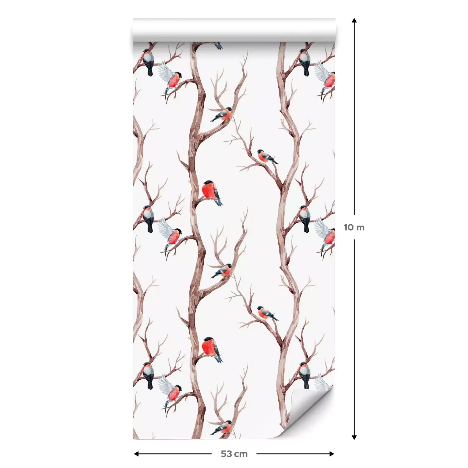 Eine Standard-Tapetenrolle hat die Maße 0,53 m x 10 m und deckt eine Wandfläche von etwa 5 m² ab.