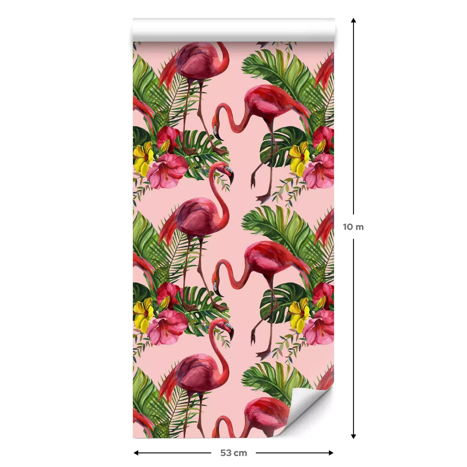 Eine Standard-Tapetenrolle hat die Maße 0,53 m x 10 m und deckt eine Wandfläche von etwa 5 m² ab.