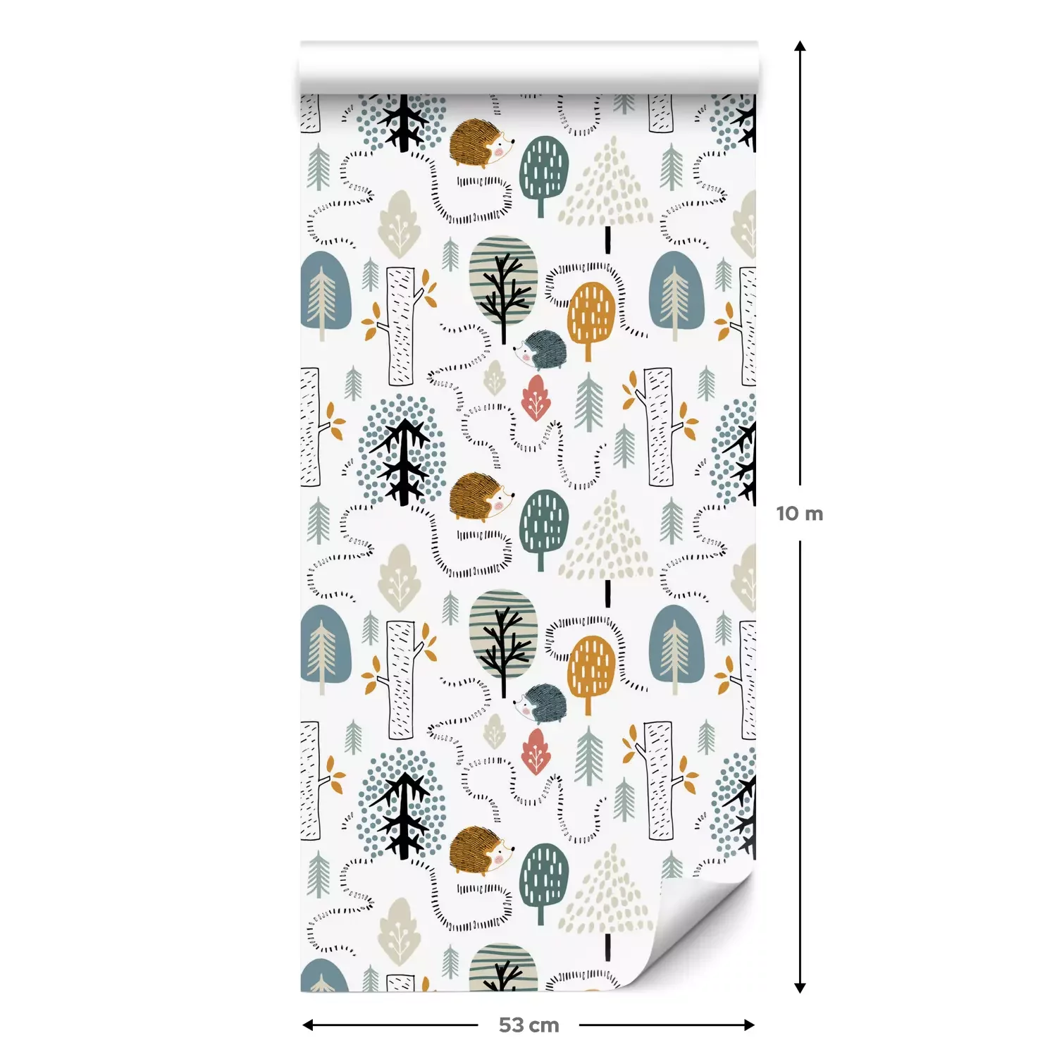 Eine Standard-Tapetenrolle hat die Maße 0,53 m x 10 m und deckt eine Wandfläche von etwa 5 m² ab.