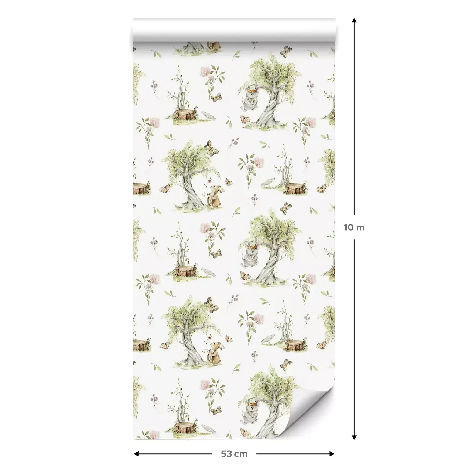 Eine Standard-Tapetenrolle hat die Maße 0,53 m x 10 m und deckt eine Wandfläche von etwa 5 m² ab.
