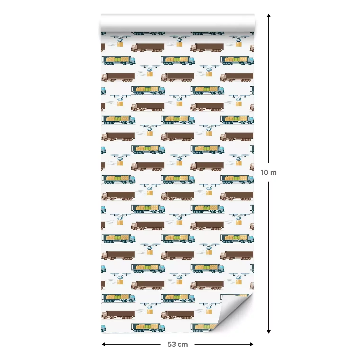 Eine Standard-Tapetenrolle hat die Maße 0,53 m x 10 m und deckt eine Wandfläche von etwa 5 m² ab.