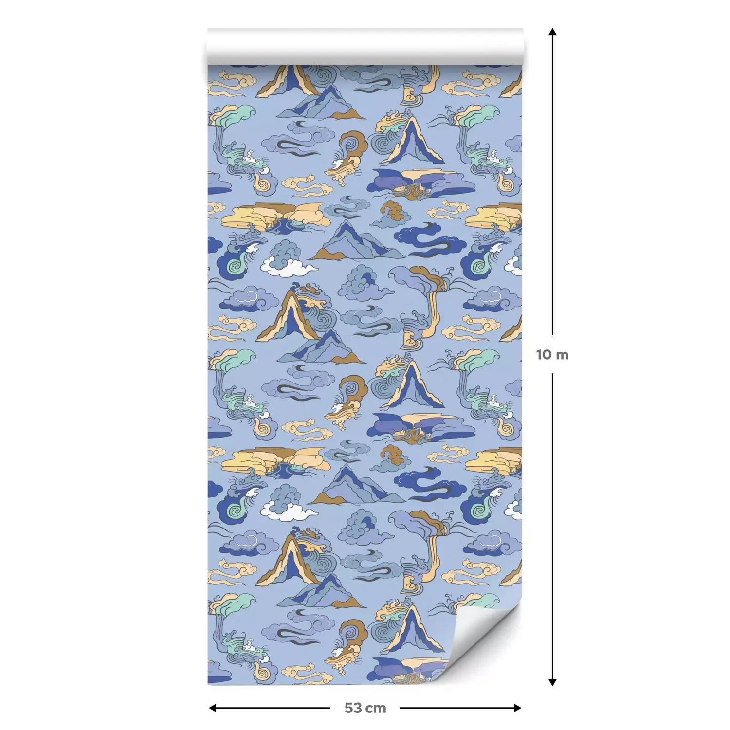 Eine Standard-Tapetenrolle hat die Maße 0,53 m x 10 m und deckt eine Wandfläche von etwa 5 m² ab.