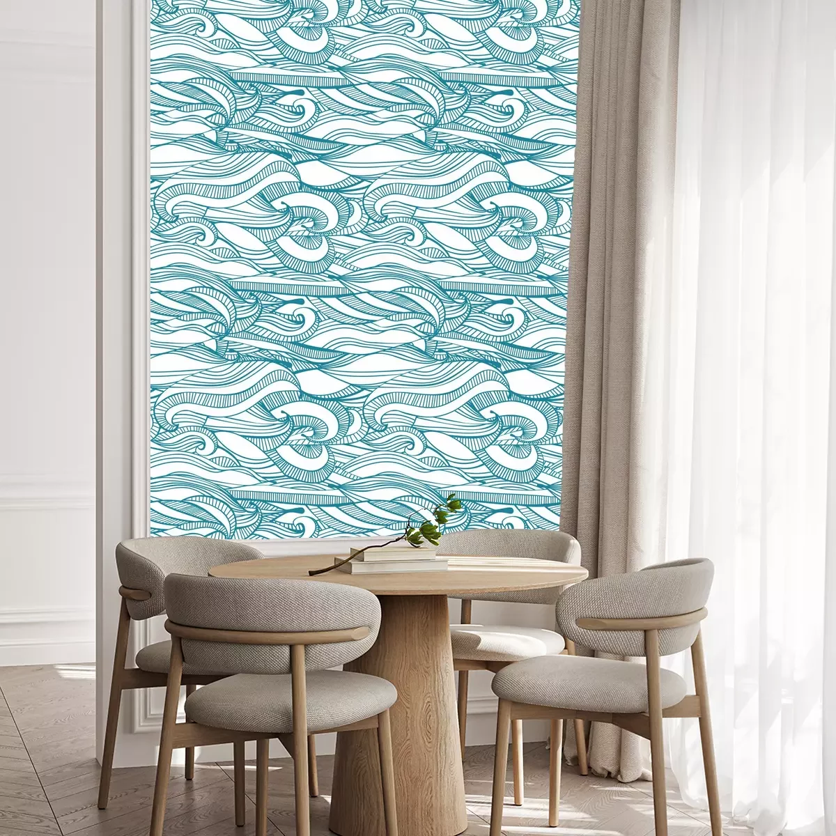 Die Tapete zeichnet sich durch ein sich wiederholendes Muster aus, das ein rhythmisches Design erzeugt. Als Trägermaterial wird hier Vlies verwendet. Sie wird in Rollen mit den standardisierten Maßen 10 m x 53 cm verkauft. Eine Fototapete ist eine spezielle Art von Tapete, auf der ein Foto oder ein realistisches Bild (z.B. eine Landschaft oder eine Stadtansicht) großflächig aufgedruckt ist. Sie wird nicht in Standardrollen verkauft, sondern in Bahnen, die auf die Abmessungen einer bestimmten Wand zugeschnitten sind. So passt das gesamte Motiv perfekt darauf. Zudem können Sie das Material wählen, aus dem die Tapete hergestellt werden soll.