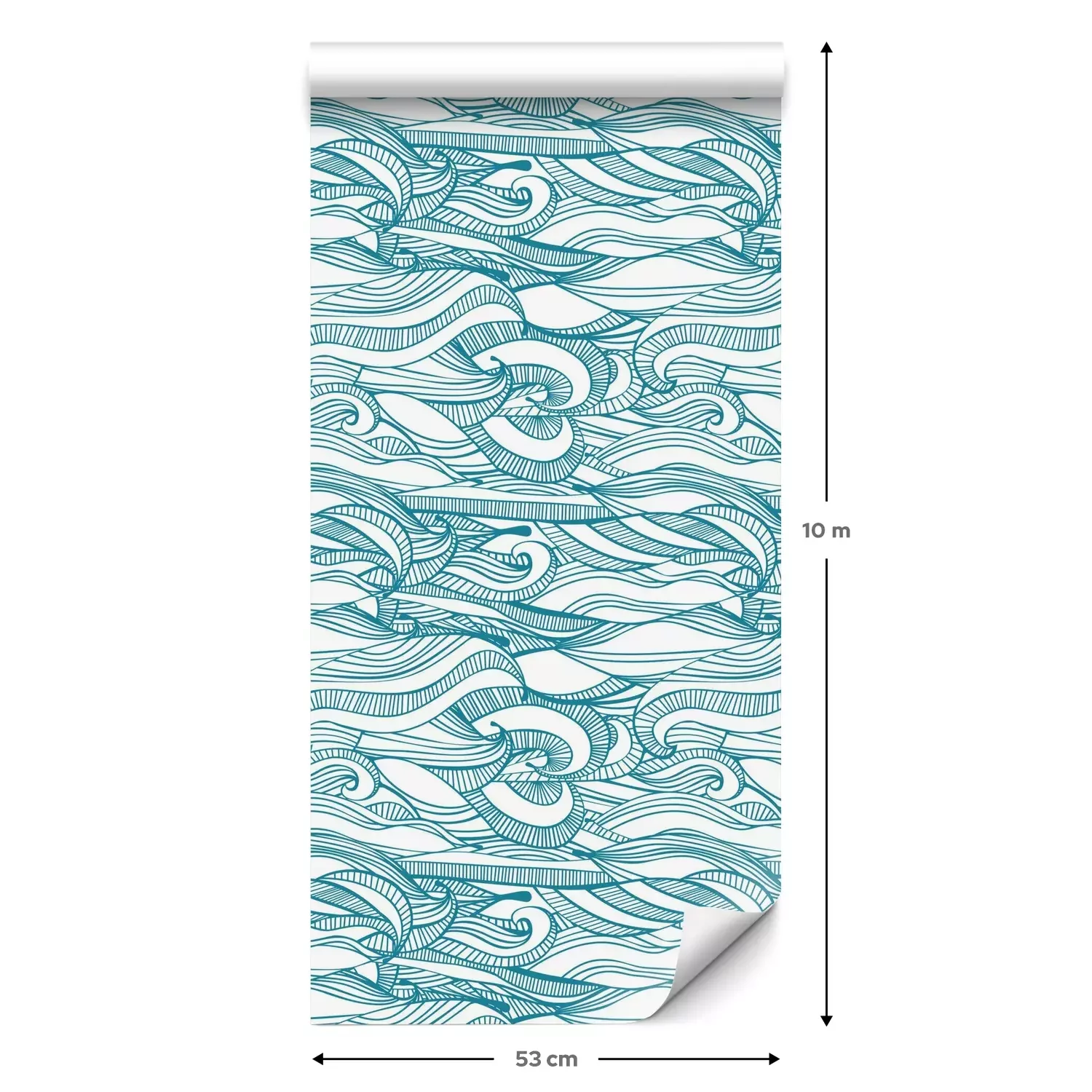 Eine Standard-Tapetenrolle hat die Maße 0,53 m x 10 m und deckt eine Wandfläche von etwa 5 m² ab.