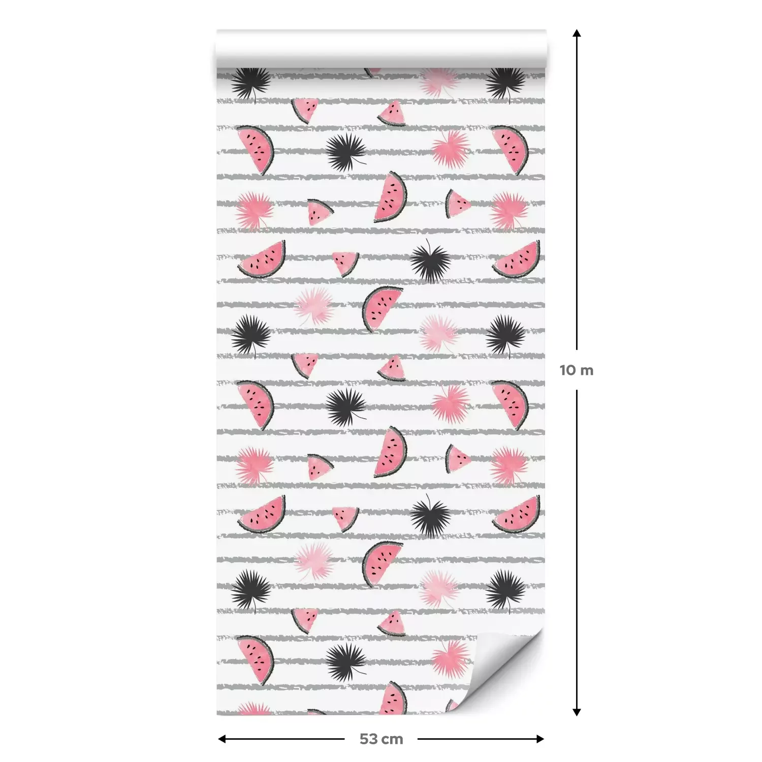 Eine Standard-Tapetenrolle hat die Maße 0,53 m x 10 m und deckt eine Wandfläche von etwa 5 m² ab.