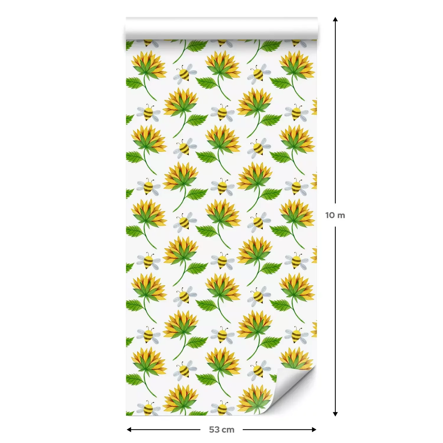 Eine Standard-Tapetenrolle hat die Maße 0,53 m x 10 m und deckt eine Wandfläche von etwa 5 m² ab.