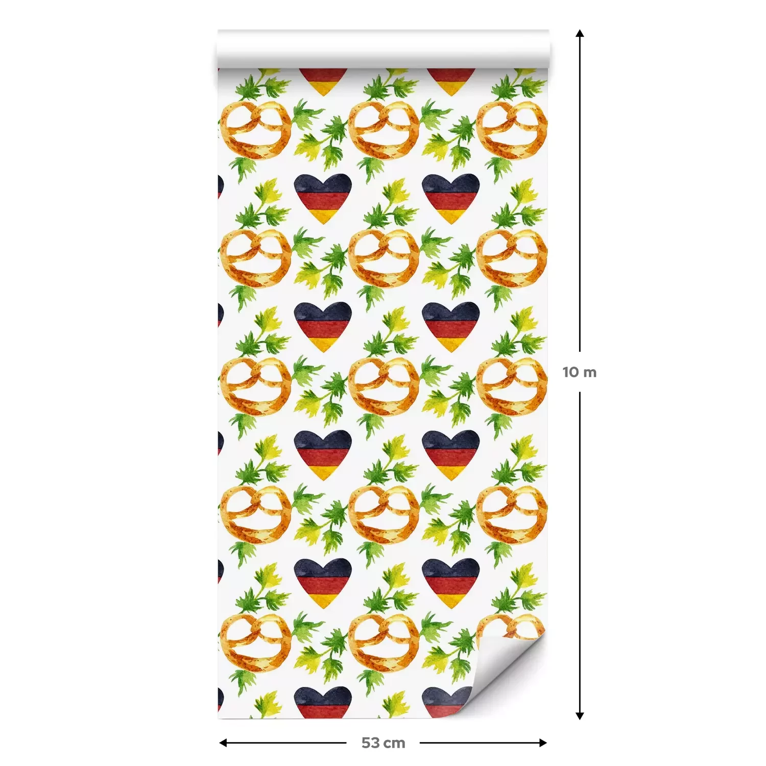 Eine Standard-Tapetenrolle hat die Maße 0,53 m x 10 m und deckt eine Wandfläche von etwa 5 m² ab.