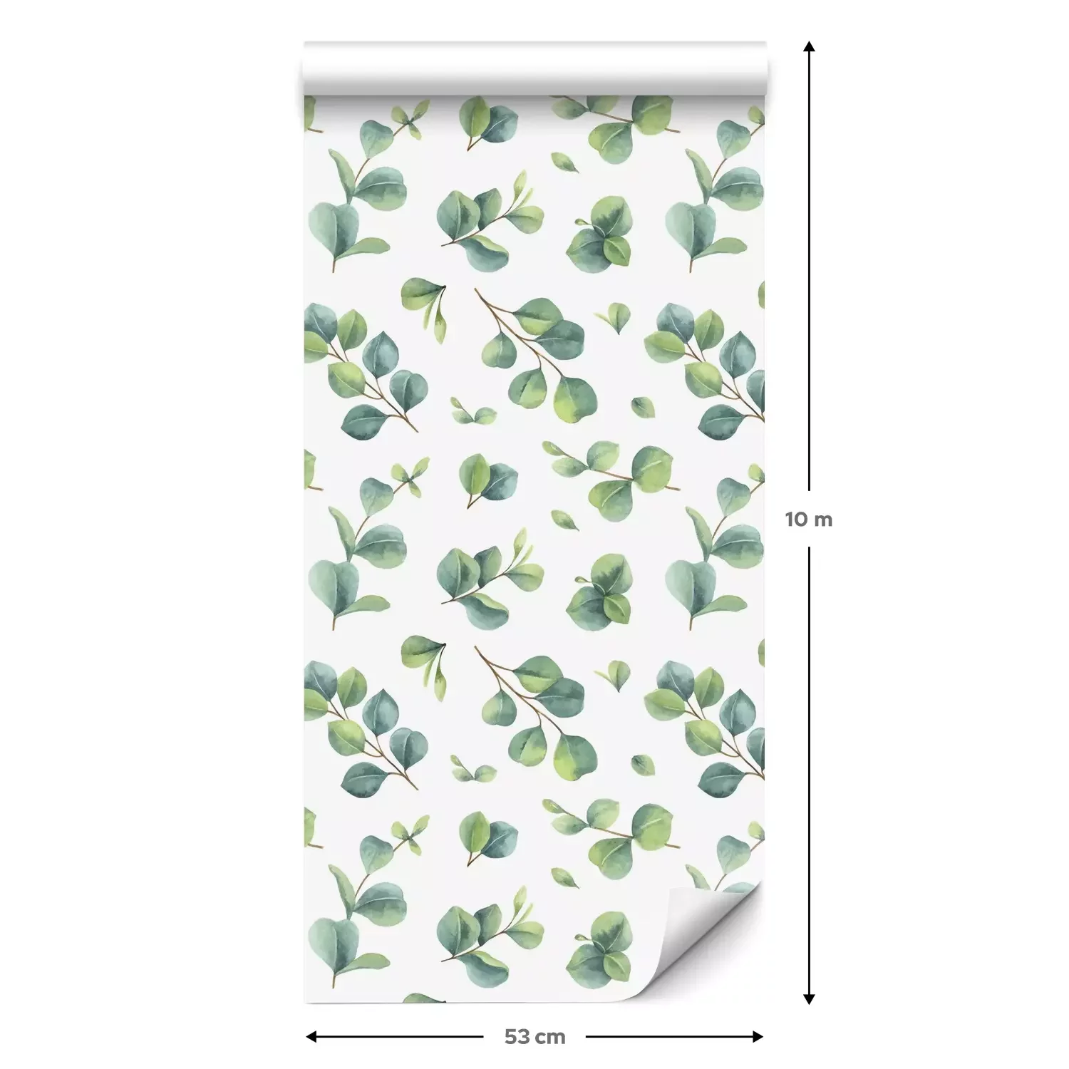 Eine Standard-Tapetenrolle hat die Maße 0,53 m x 10 m und deckt eine Wandfläche von etwa 5 m² ab.