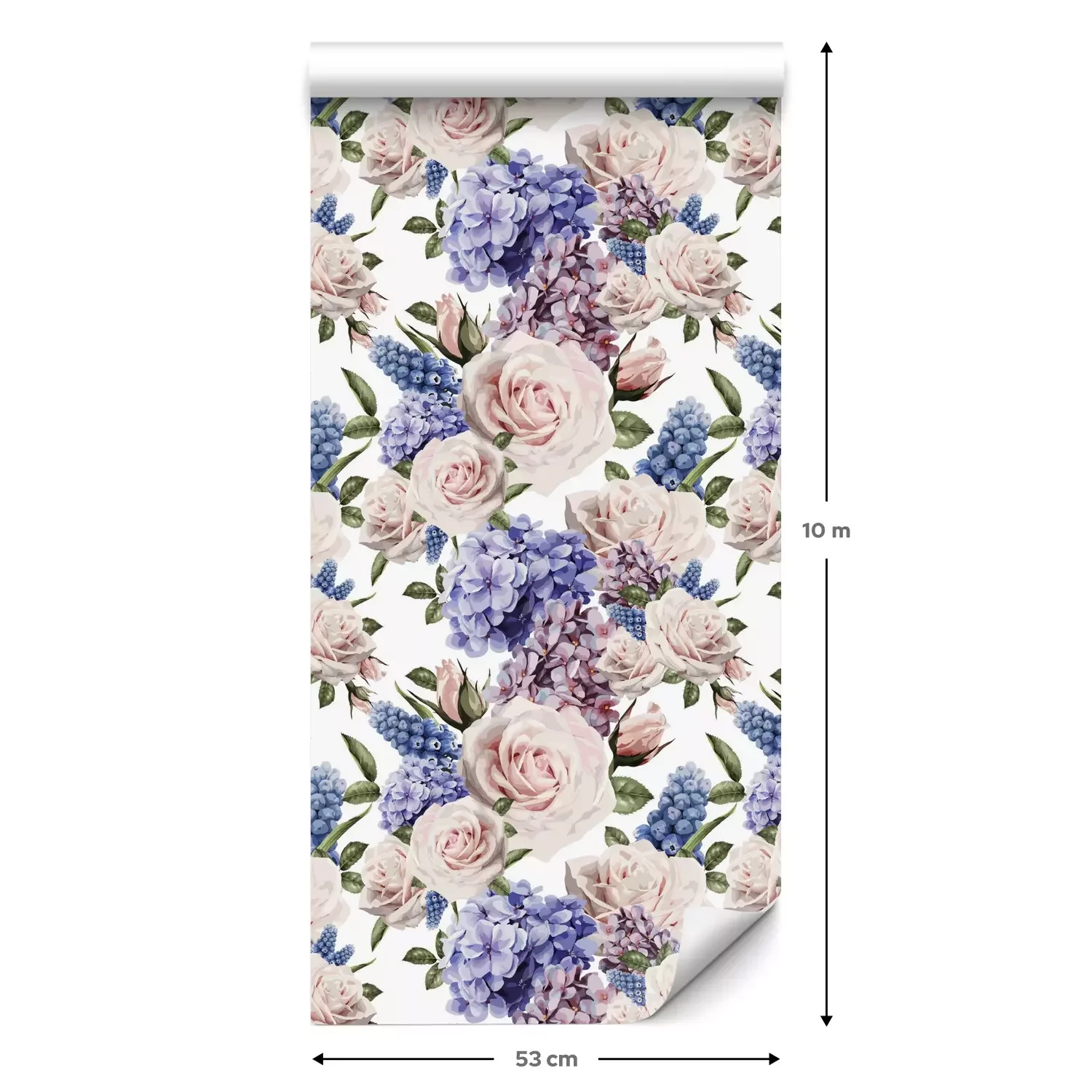 Eine Standard-Tapetenrolle hat die Maße 0,53 m x 10 m und deckt eine Wandfläche von etwa 5 m² ab.