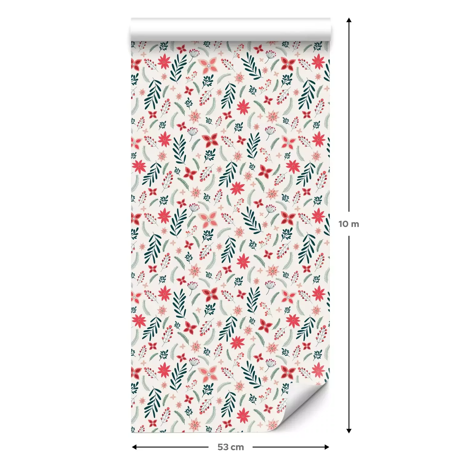 Eine Standard-Tapetenrolle hat die Maße 0,53 m x 10 m und deckt eine Wandfläche von etwa 5 m² ab.