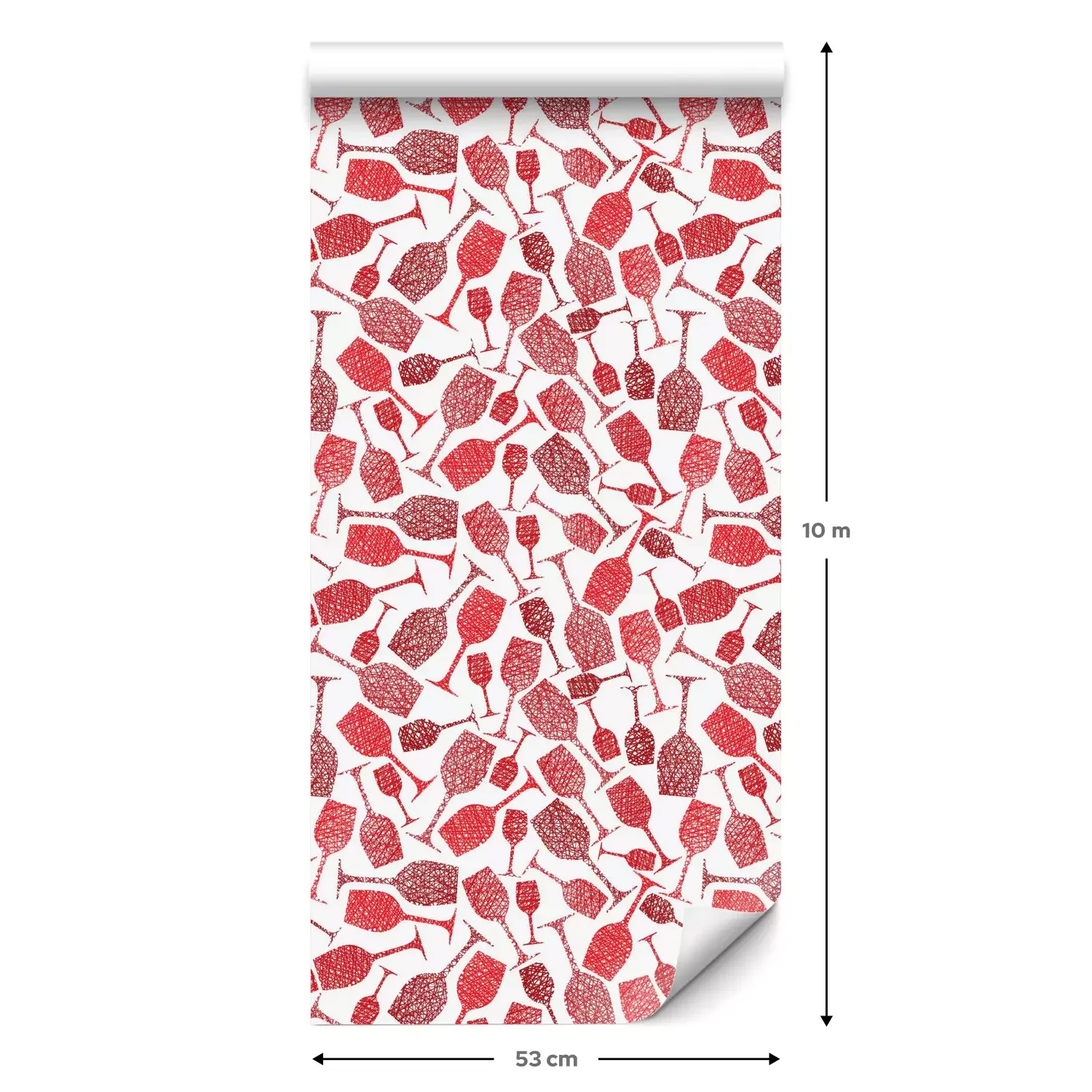 Eine Standard-Tapetenrolle hat die Maße 0,53 m x 10 m und deckt eine Wandfläche von etwa 5 m² ab.