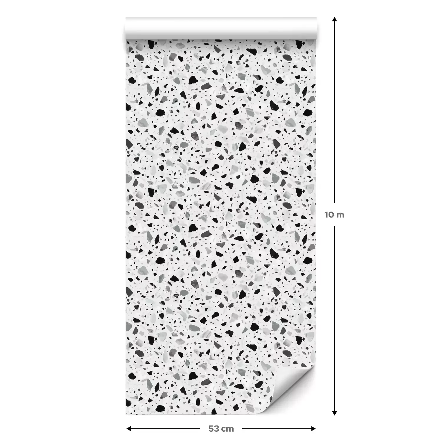 Eine Standard-Tapetenrolle hat die Maße 0,53 m x 10 m und deckt eine Wandfläche von etwa 5 m² ab.