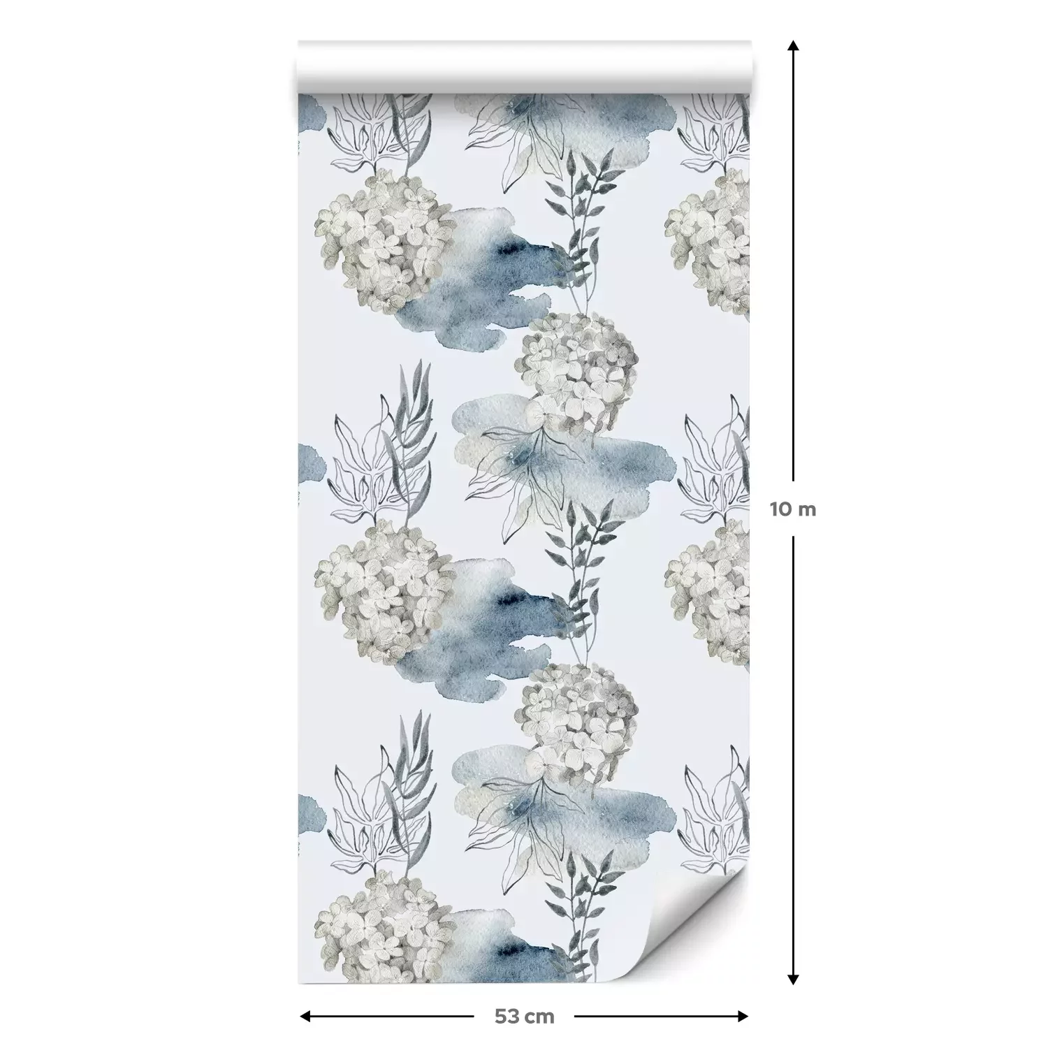 Eine Standard-Tapetenrolle hat die Maße 0,53 m x 10 m und deckt eine Wandfläche von etwa 5 m² ab.