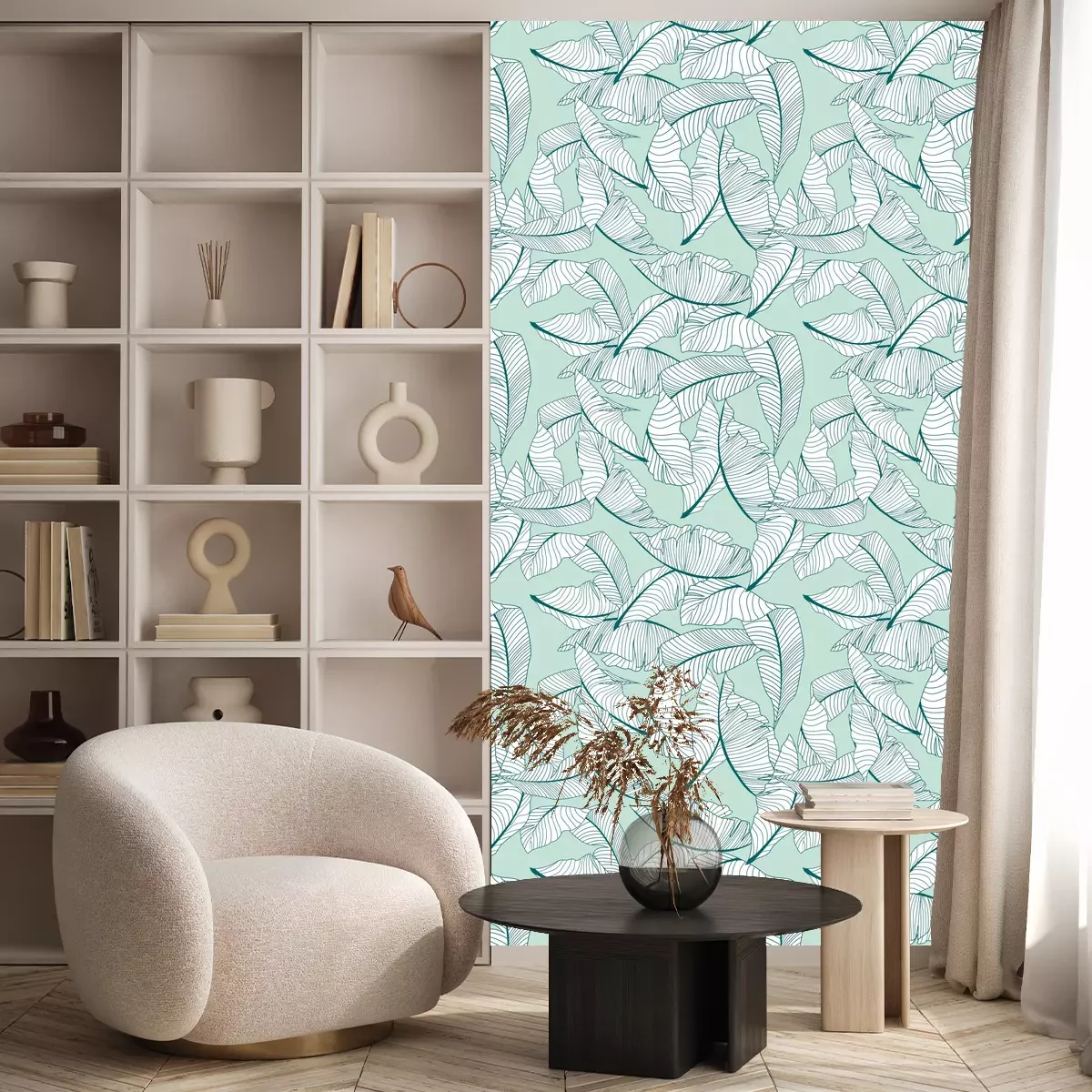 Türkisfarbene BlätterTapete