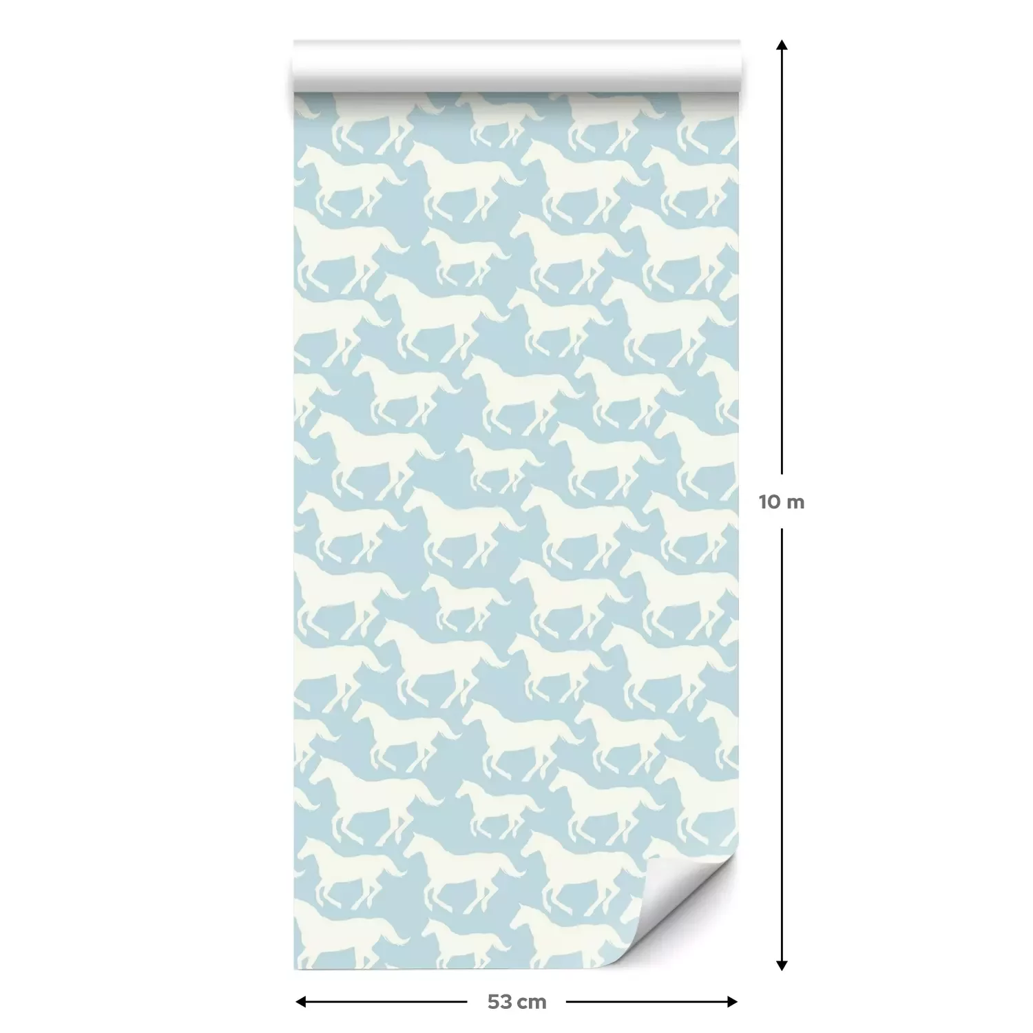 Eine Standard-Tapetenrolle hat die Maße 0,53 m x 10 m und deckt eine Wandfläche von etwa 5 m² ab.