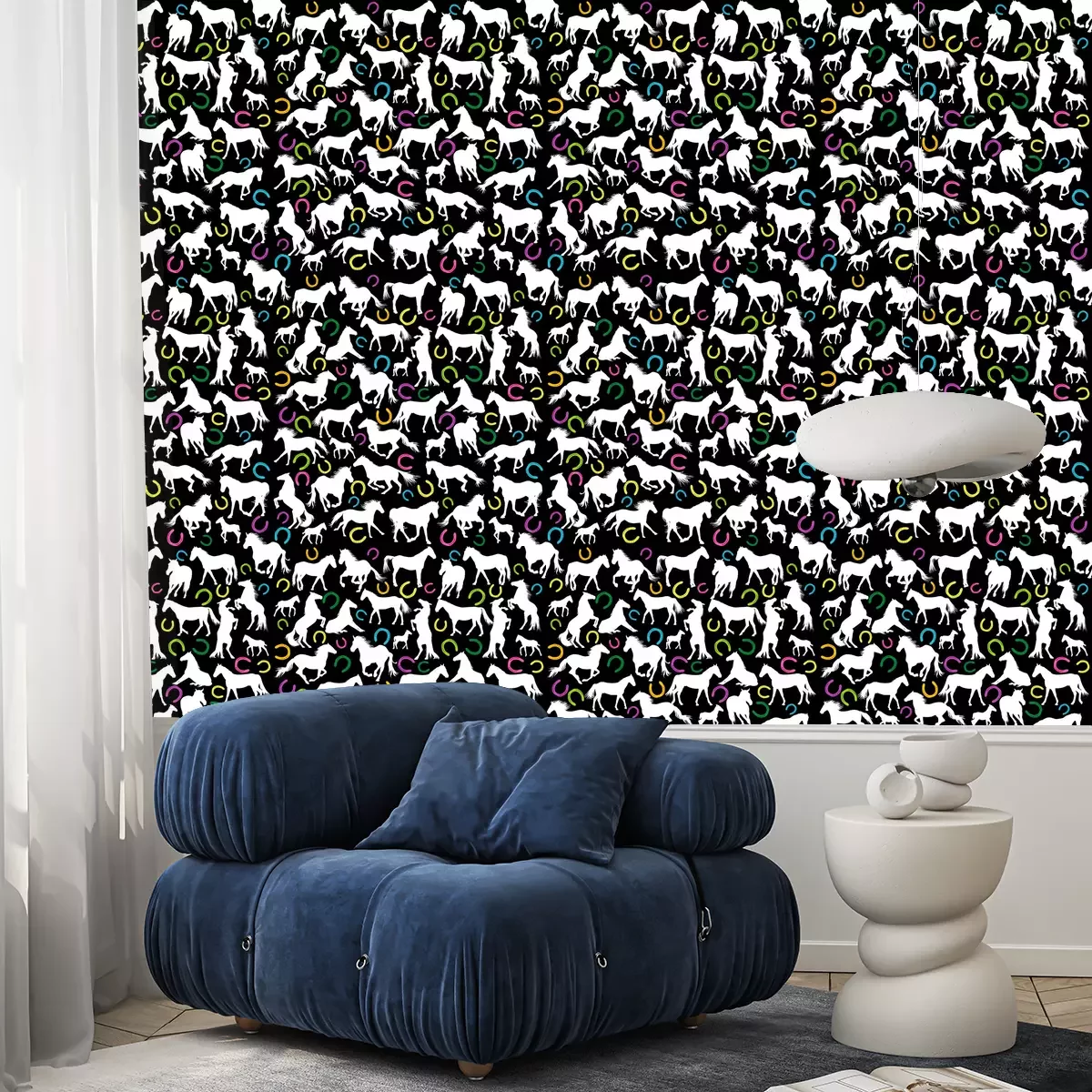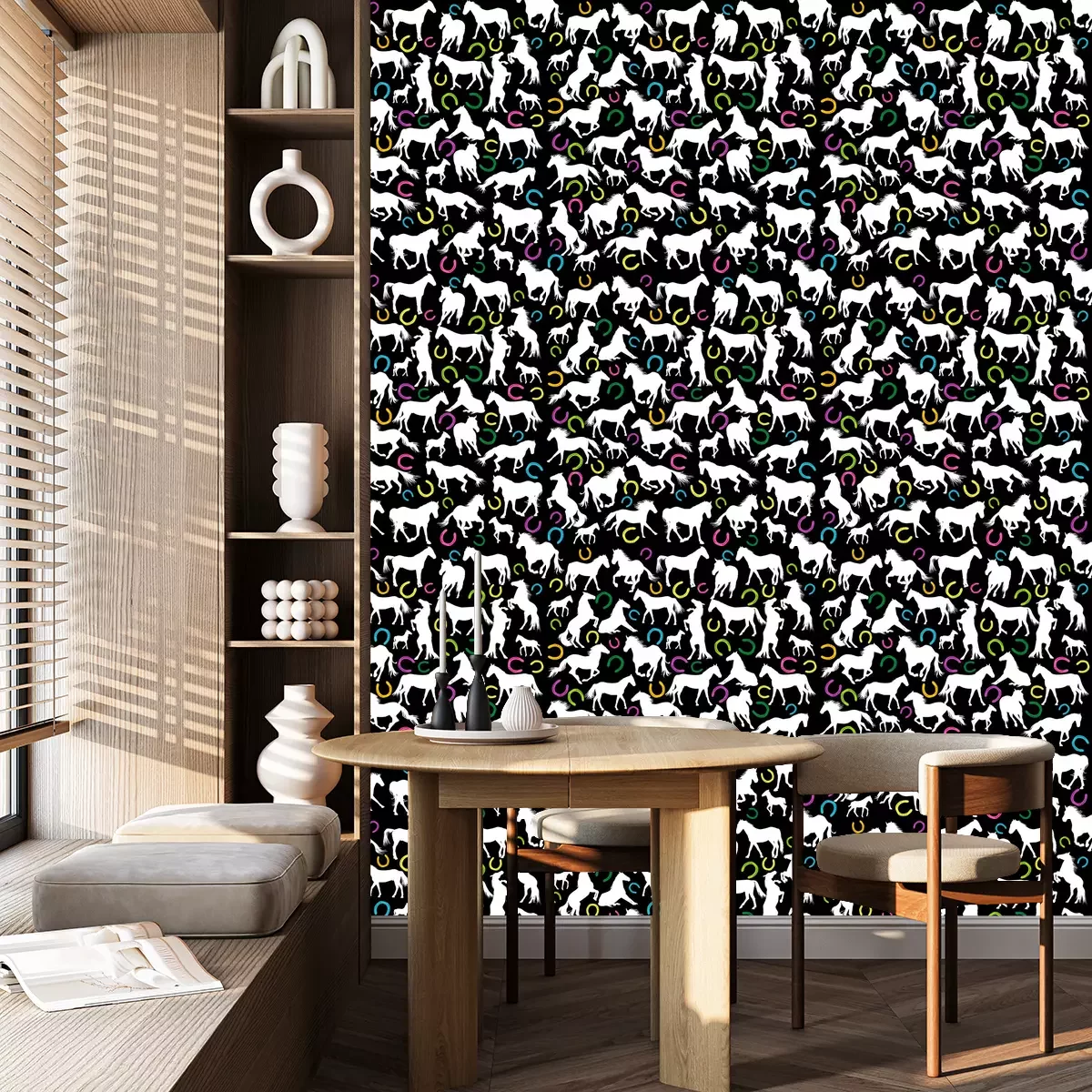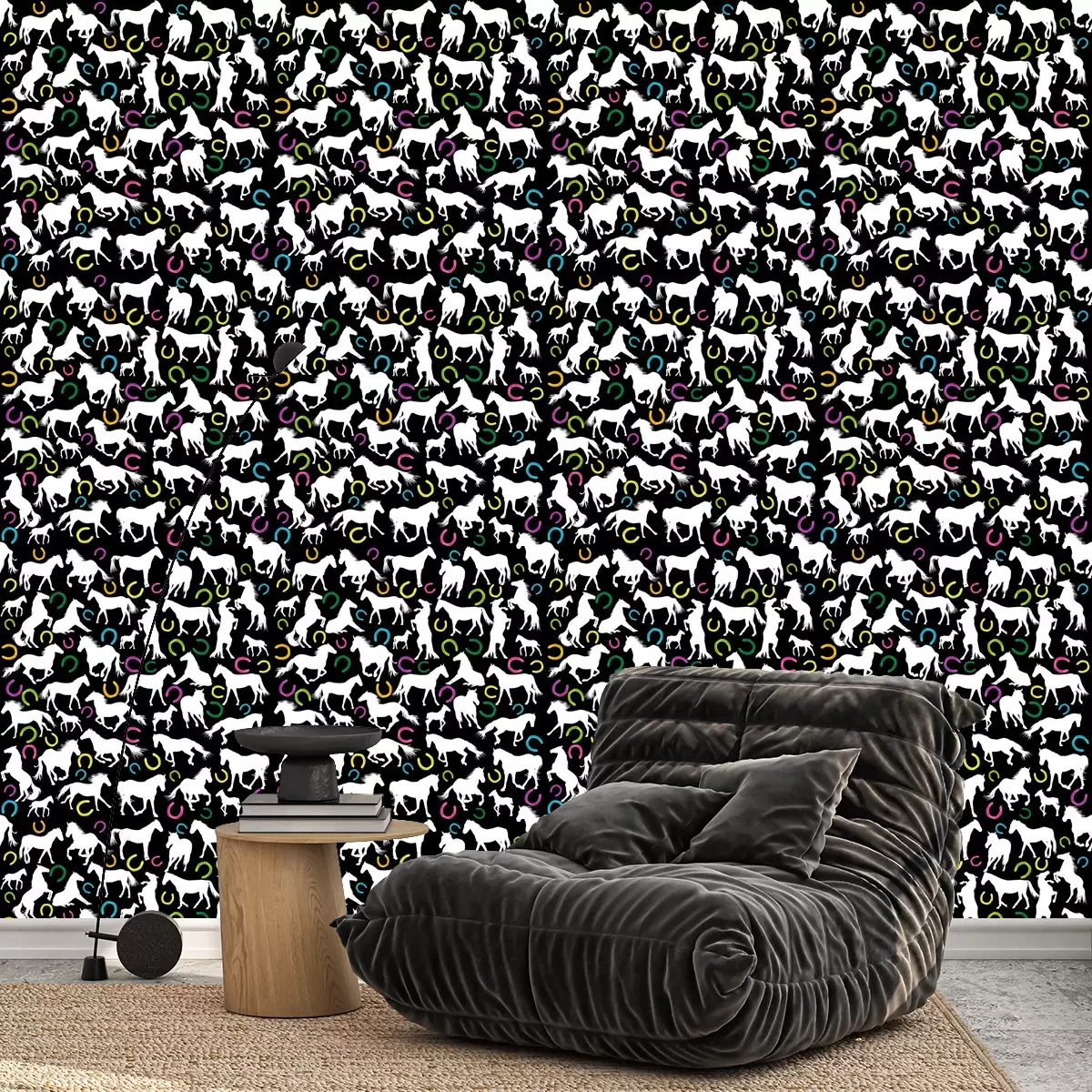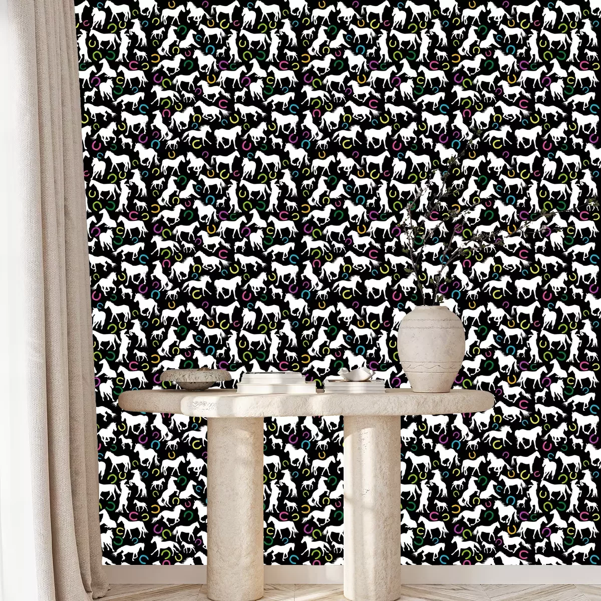 Bunte Pferde und HufeisenProblemlose Lieferung durch vertrauenswürdige Spediteure