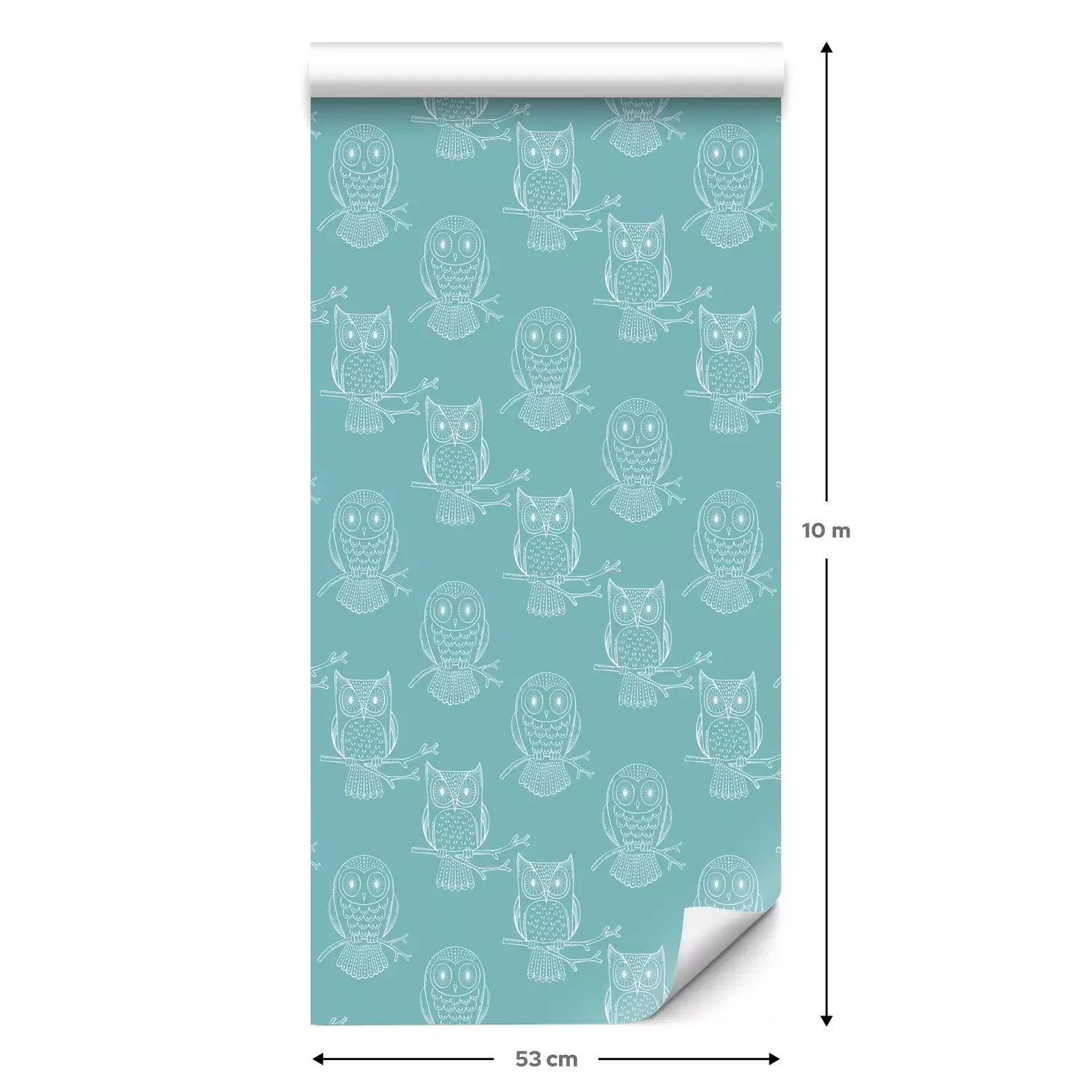 Eine Standard-Tapetenrolle hat die Maße 0,53 m x 10 m und deckt eine Wandfläche von etwa 5 m² ab.