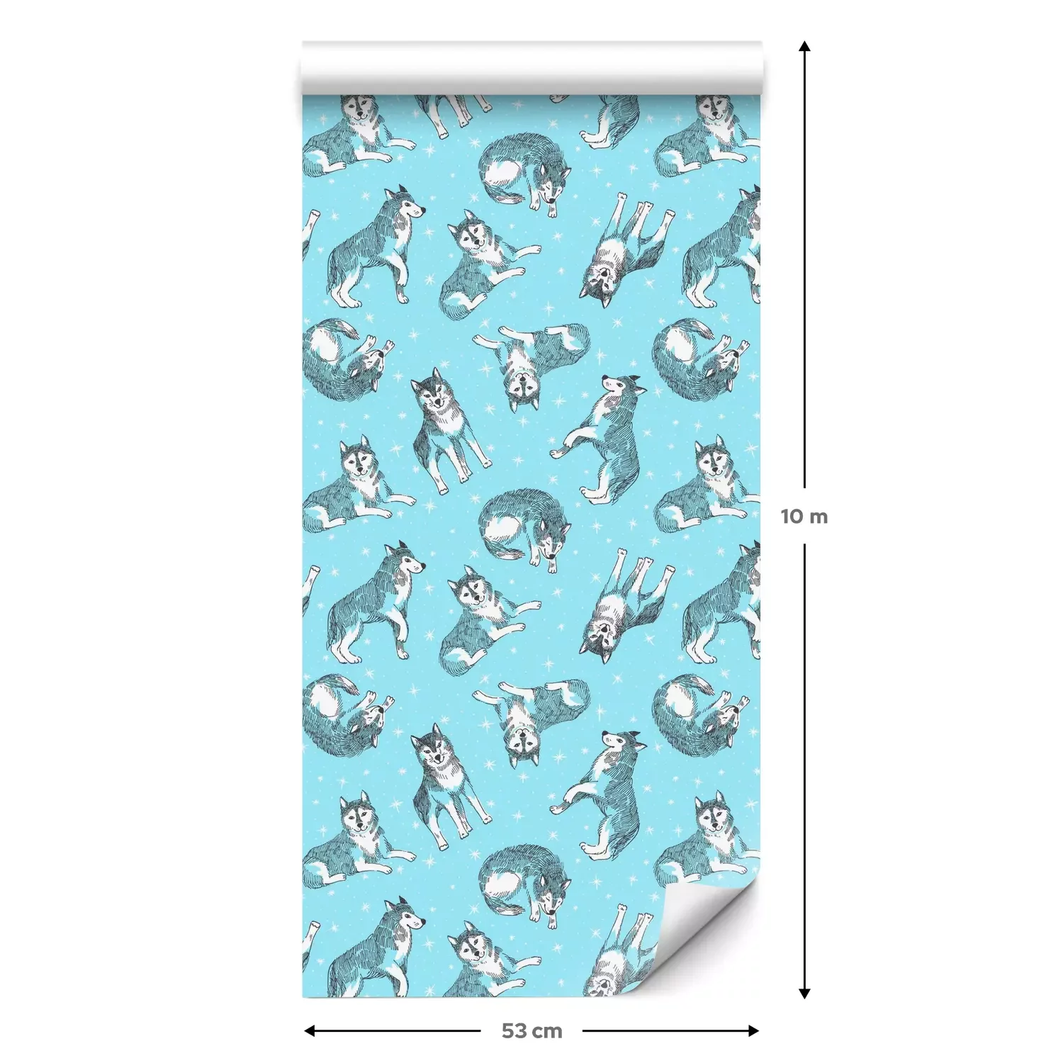 Eine Standard-Tapetenrolle hat die Maße 0,53 m x 10 m und deckt eine Wandfläche von etwa 5 m² ab.