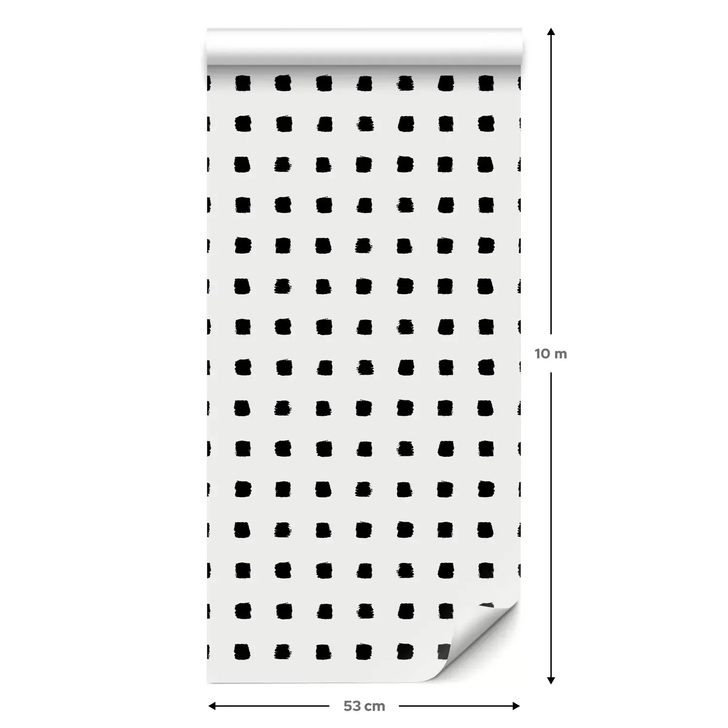 Eine Standard-Tapetenrolle hat die Maße 0,53 m x 10 m und deckt eine Wandfläche von etwa 5 m² ab.
