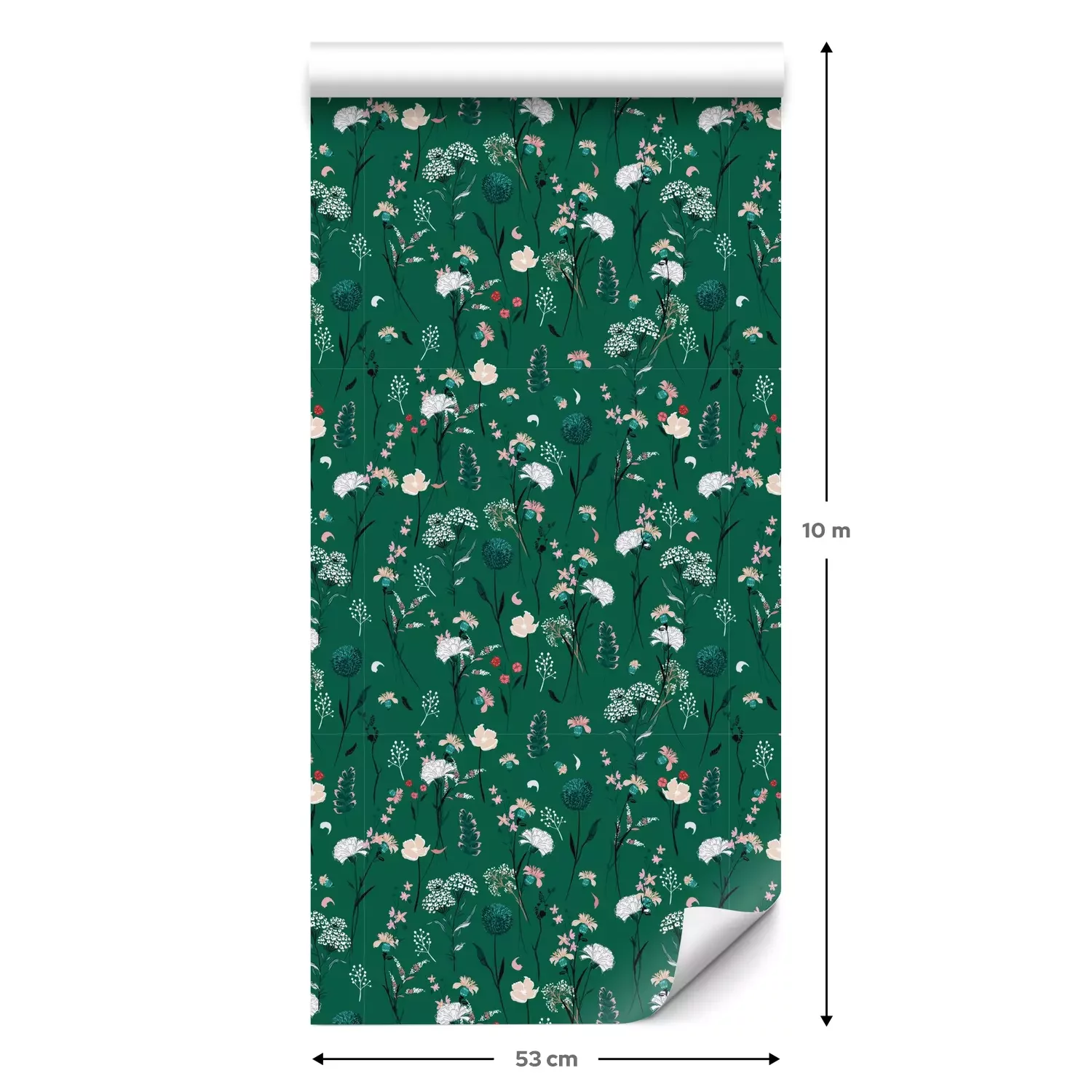 Eine Standard-Tapetenrolle hat die Maße 0,53 m x 10 m und deckt eine Wandfläche von etwa 5 m² ab.