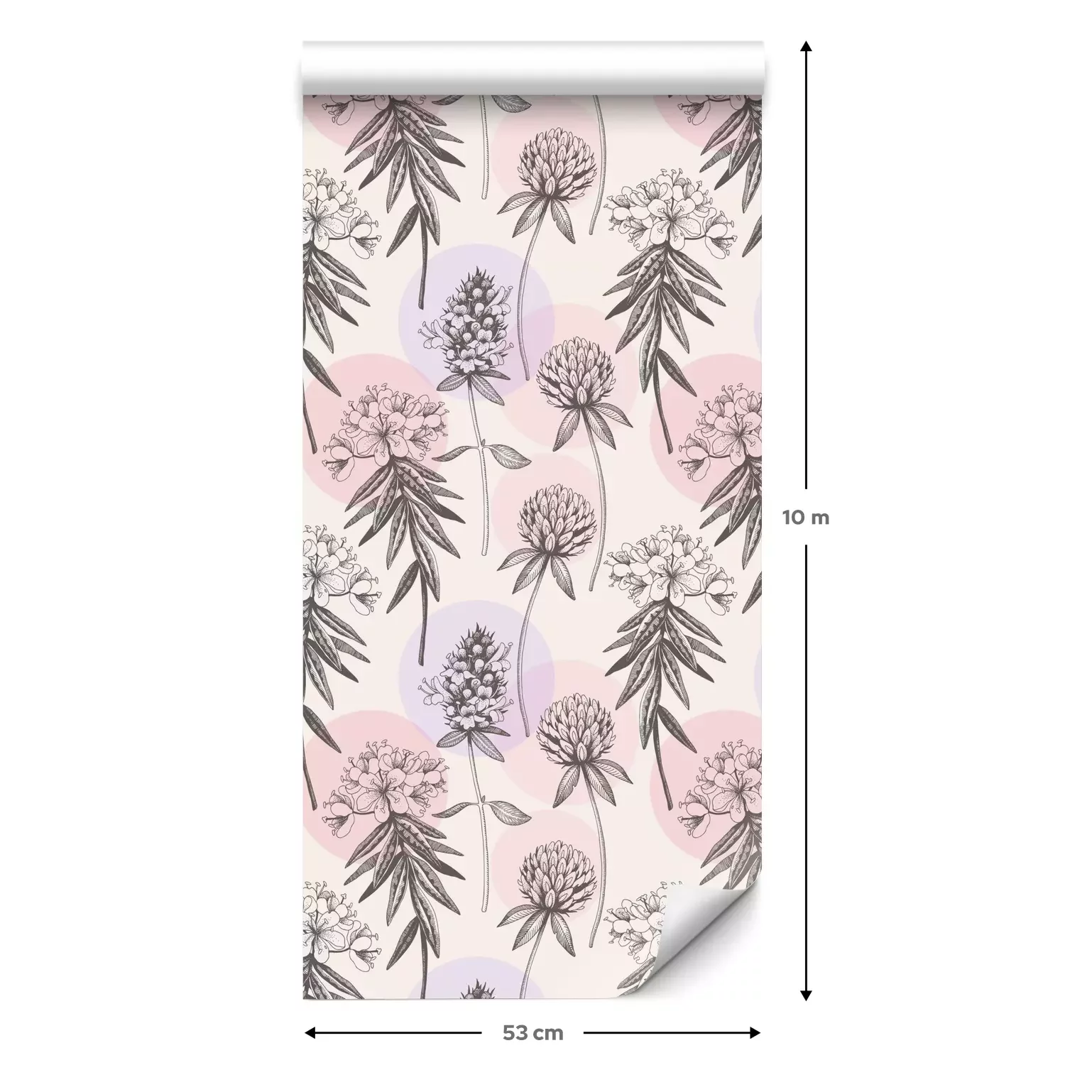 Eine Standard-Tapetenrolle hat die Maße 0,53 m x 10 m und deckt eine Wandfläche von etwa 5 m² ab.