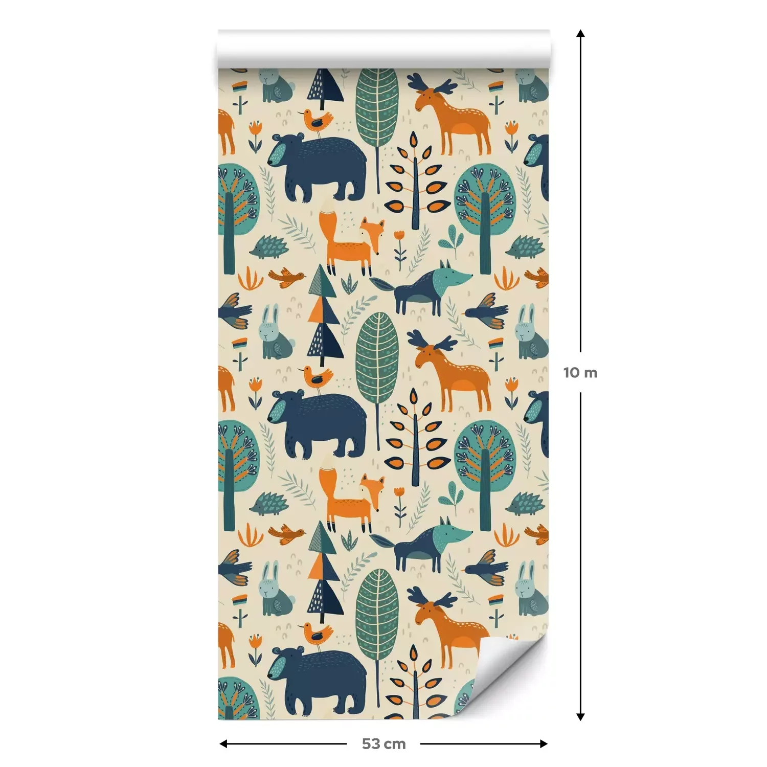 Eine Standard-Tapetenrolle hat die Maße 0,53 m x 10 m und deckt eine Wandfläche von etwa 5 m² ab.