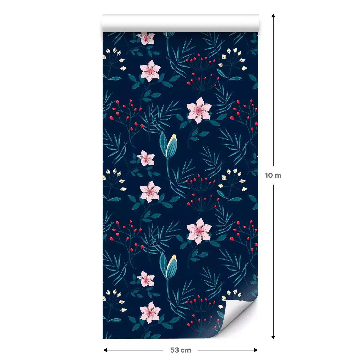 Eine Standard-Tapetenrolle hat die Maße 0,53 m x 10 m und deckt eine Wandfläche von etwa 5 m² ab.