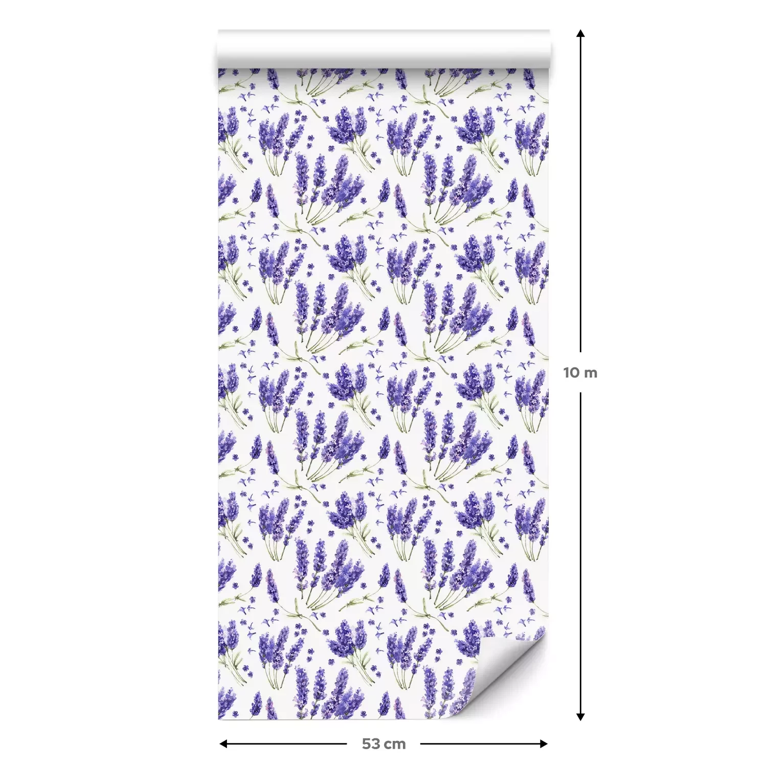 Eine Standard-Tapetenrolle hat die Maße 0,53 m x 10 m und deckt eine Wandfläche von etwa 5 m² ab.