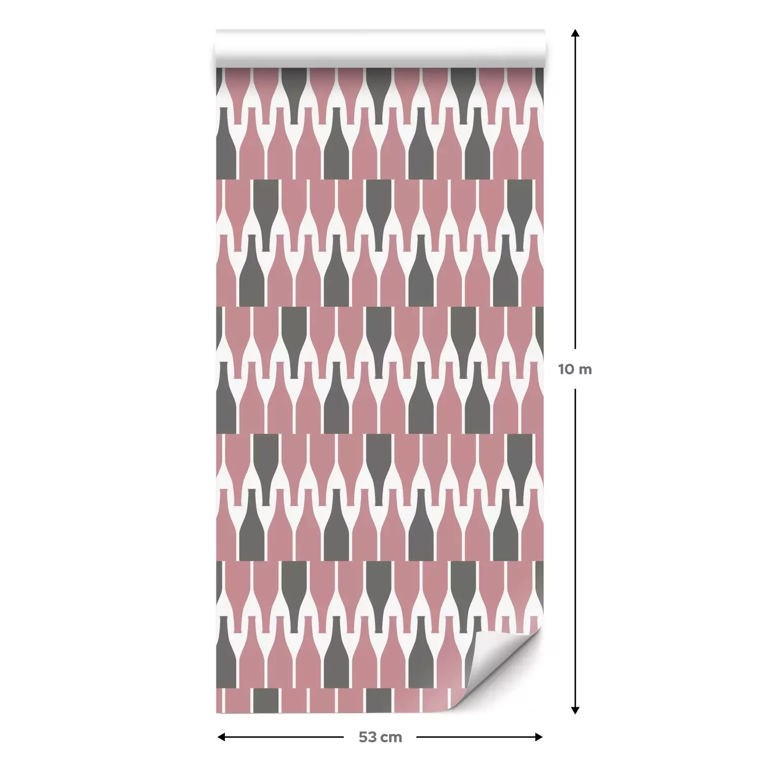 Eine Standard-Tapetenrolle hat die Maße 0,53 m x 10 m und deckt eine Wandfläche von etwa 5 m² ab.