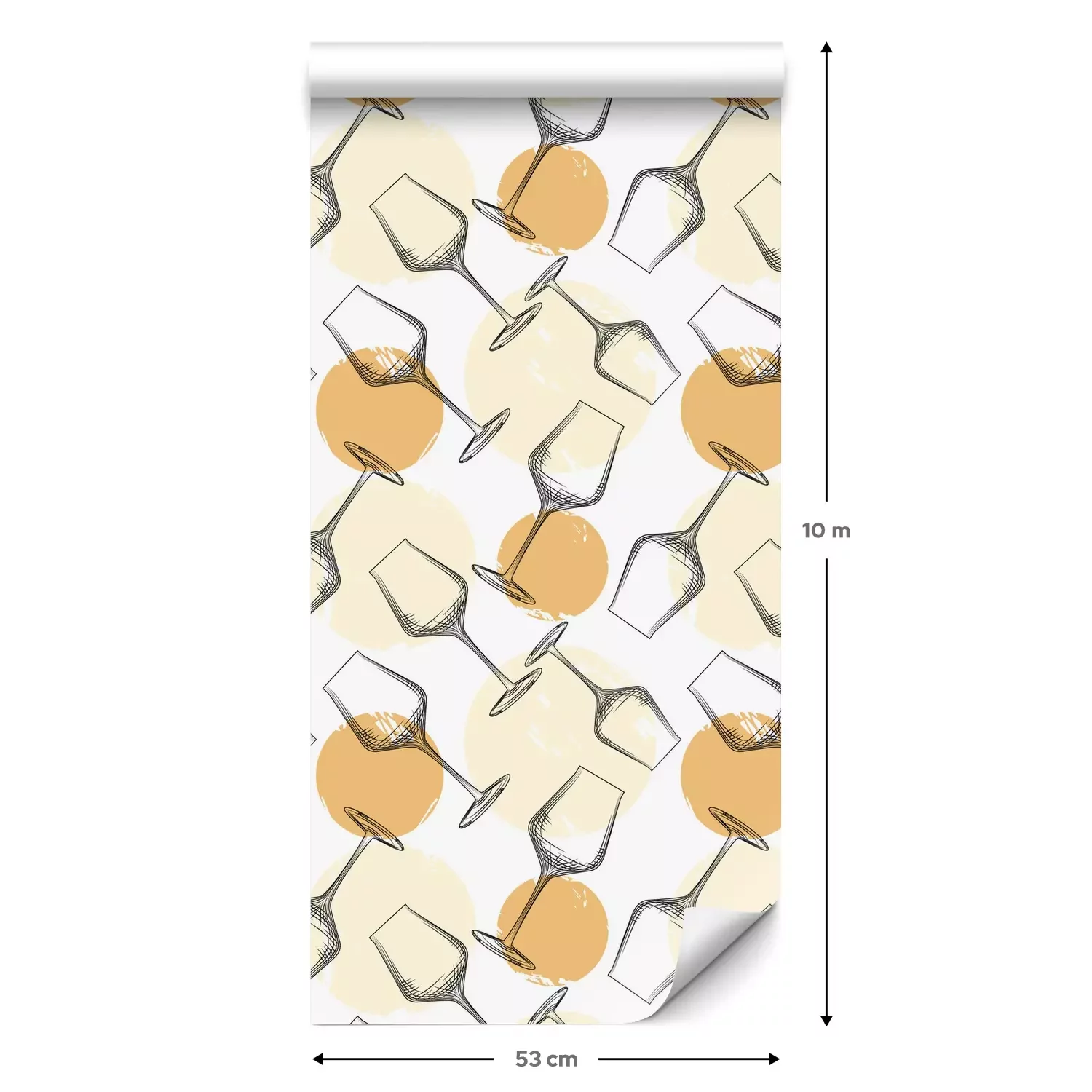 Eine Standard-Tapetenrolle hat die Maße 0,53 m x 10 m und deckt eine Wandfläche von etwa 5 m² ab.