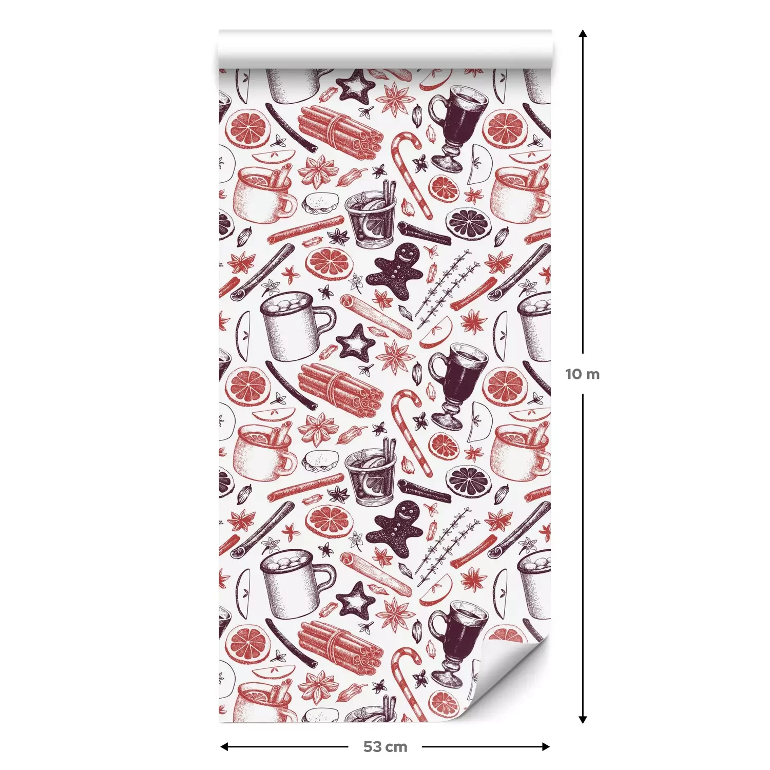 Eine Standard-Tapetenrolle hat die Maße 0,53 m x 10 m und deckt eine Wandfläche von etwa 5 m² ab.