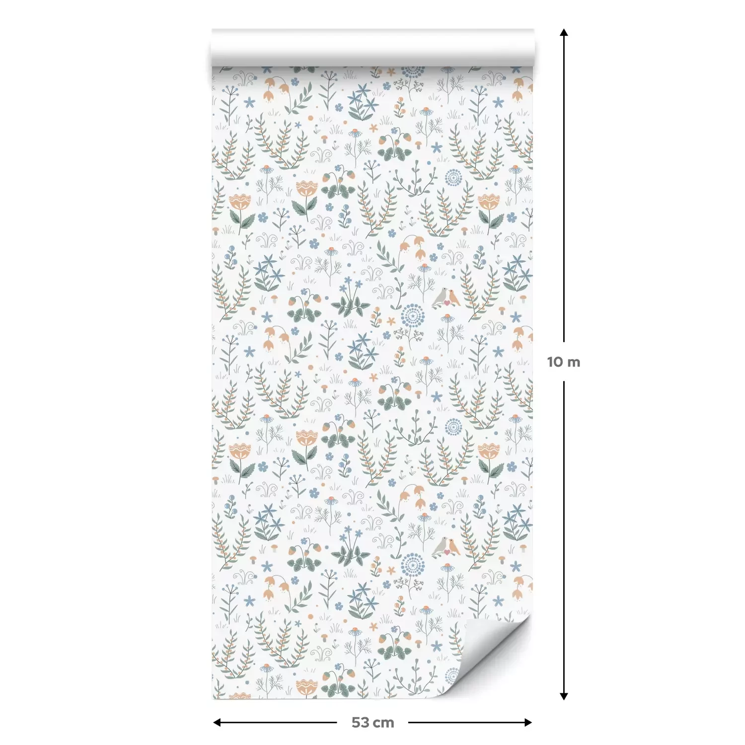 Eine Standard-Tapetenrolle hat die Maße 0,53 m x 10 m und deckt eine Wandfläche von etwa 5 m² ab.