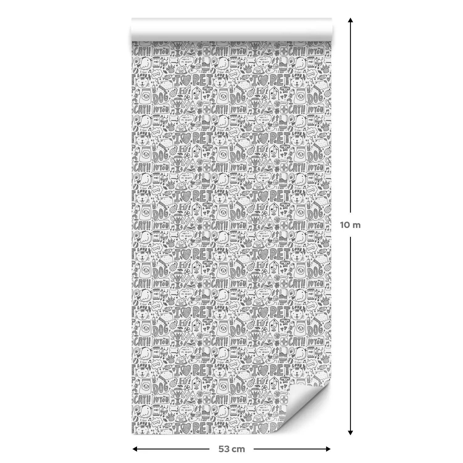 Eine Standard-Tapetenrolle hat die Maße 0,53 m x 10 m und deckt eine Wandfläche von etwa 5 m² ab.