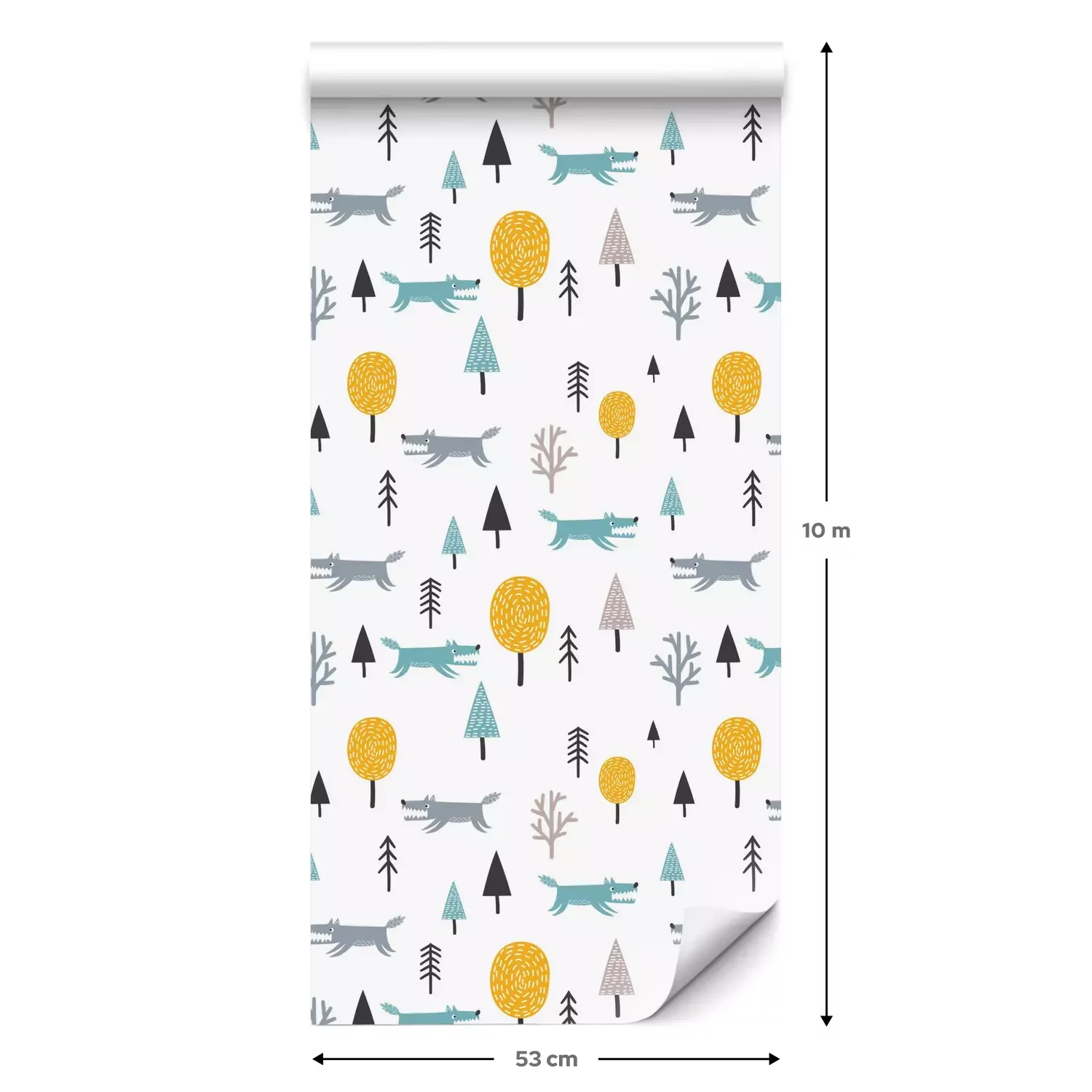 Eine Standard-Tapetenrolle hat die Maße 0,53 m x 10 m und deckt eine Wandfläche von etwa 5 m² ab.