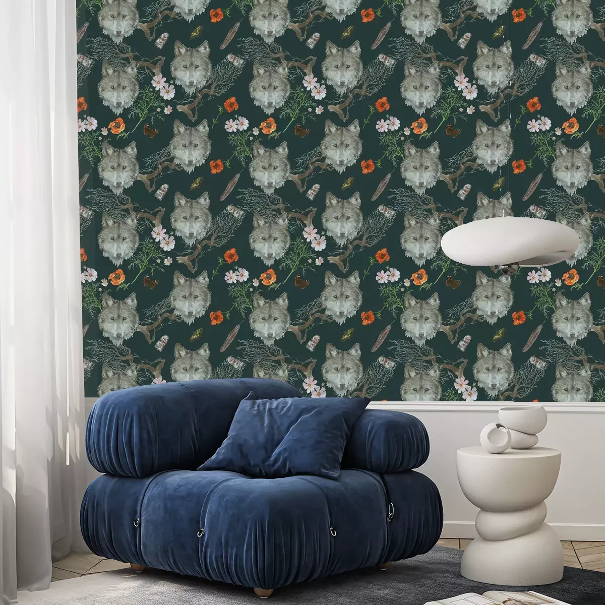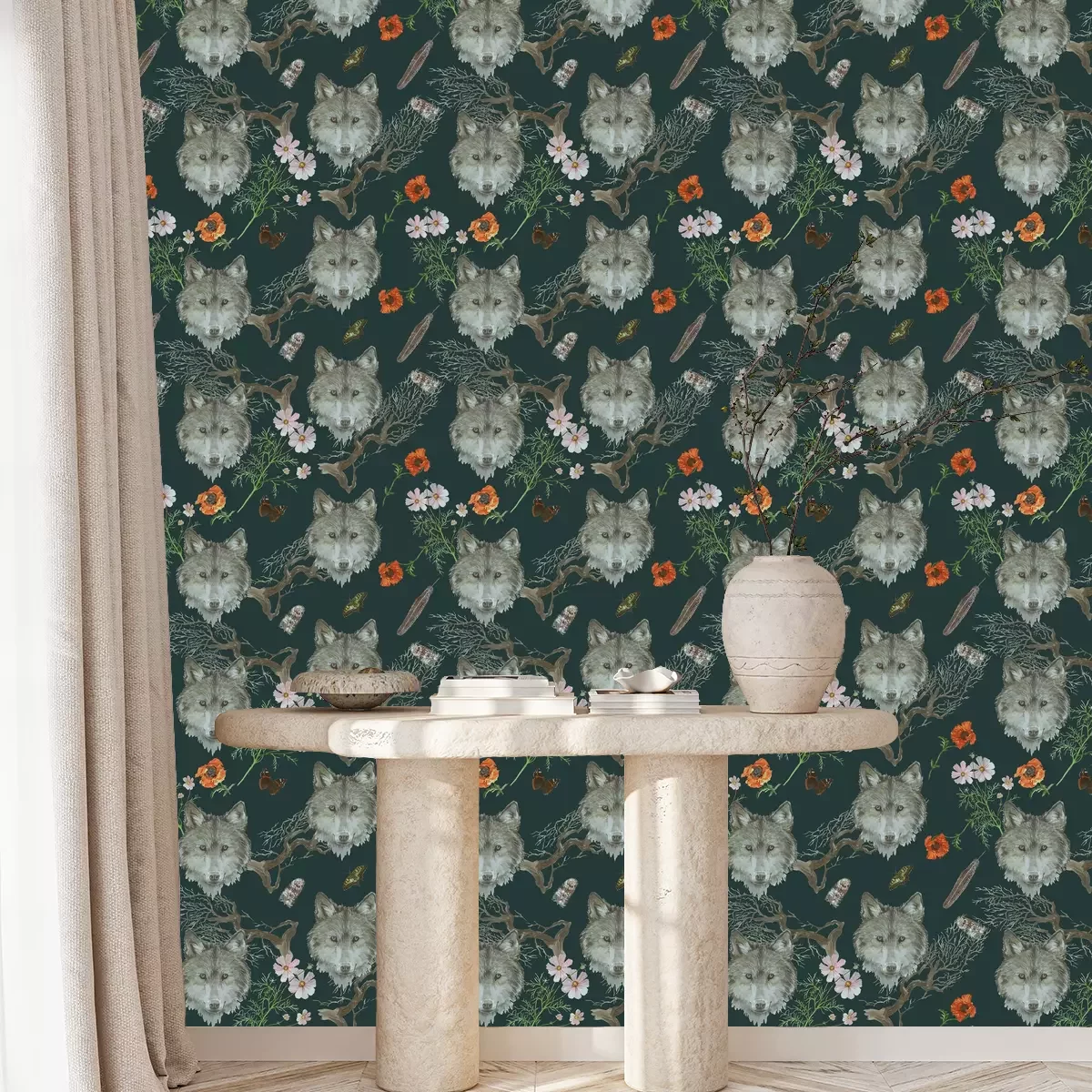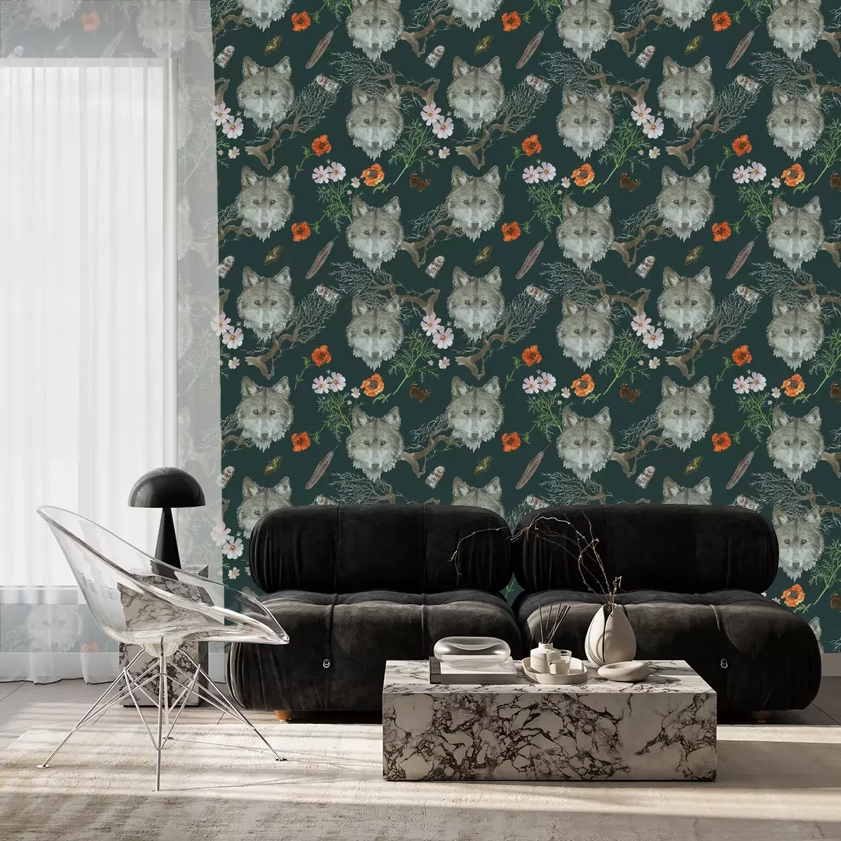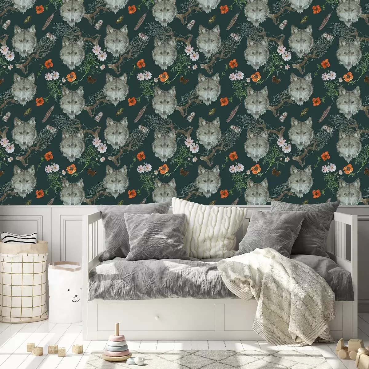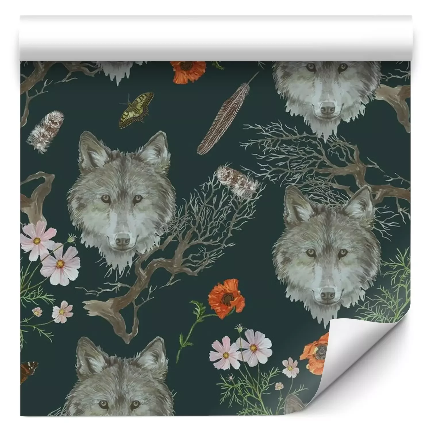 Graue Wolfsköpfe und BlumenProblemlose Lieferung durch vertrauenswürdige Spediteure