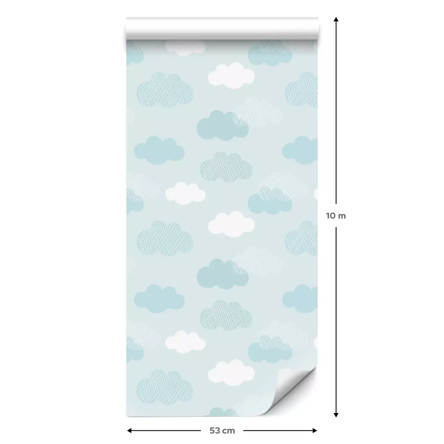 Eine Standard-Tapetenrolle hat die Maße 0,53 m x 10 m und deckt eine Wandfläche von etwa 5 m² ab.