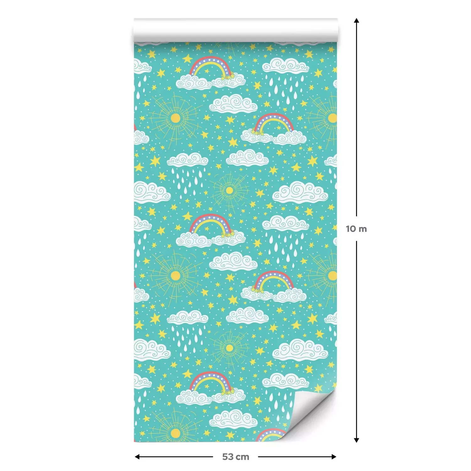 Eine Standard-Tapetenrolle hat die Maße 0,53 m x 10 m und deckt eine Wandfläche von etwa 5 m² ab.