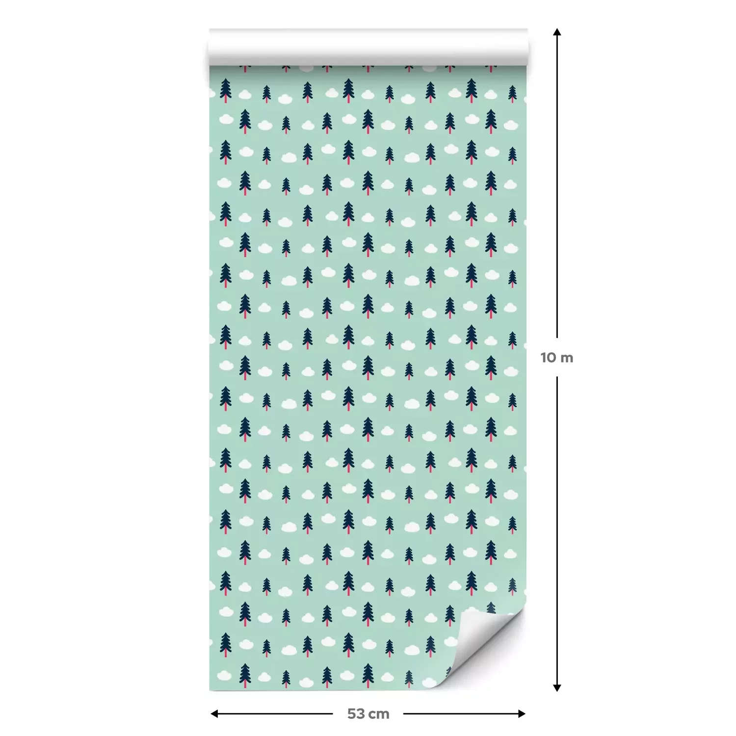 Eine Standard-Tapetenrolle hat die Maße 0,53 m x 10 m und deckt eine Wandfläche von etwa 5 m² ab.
