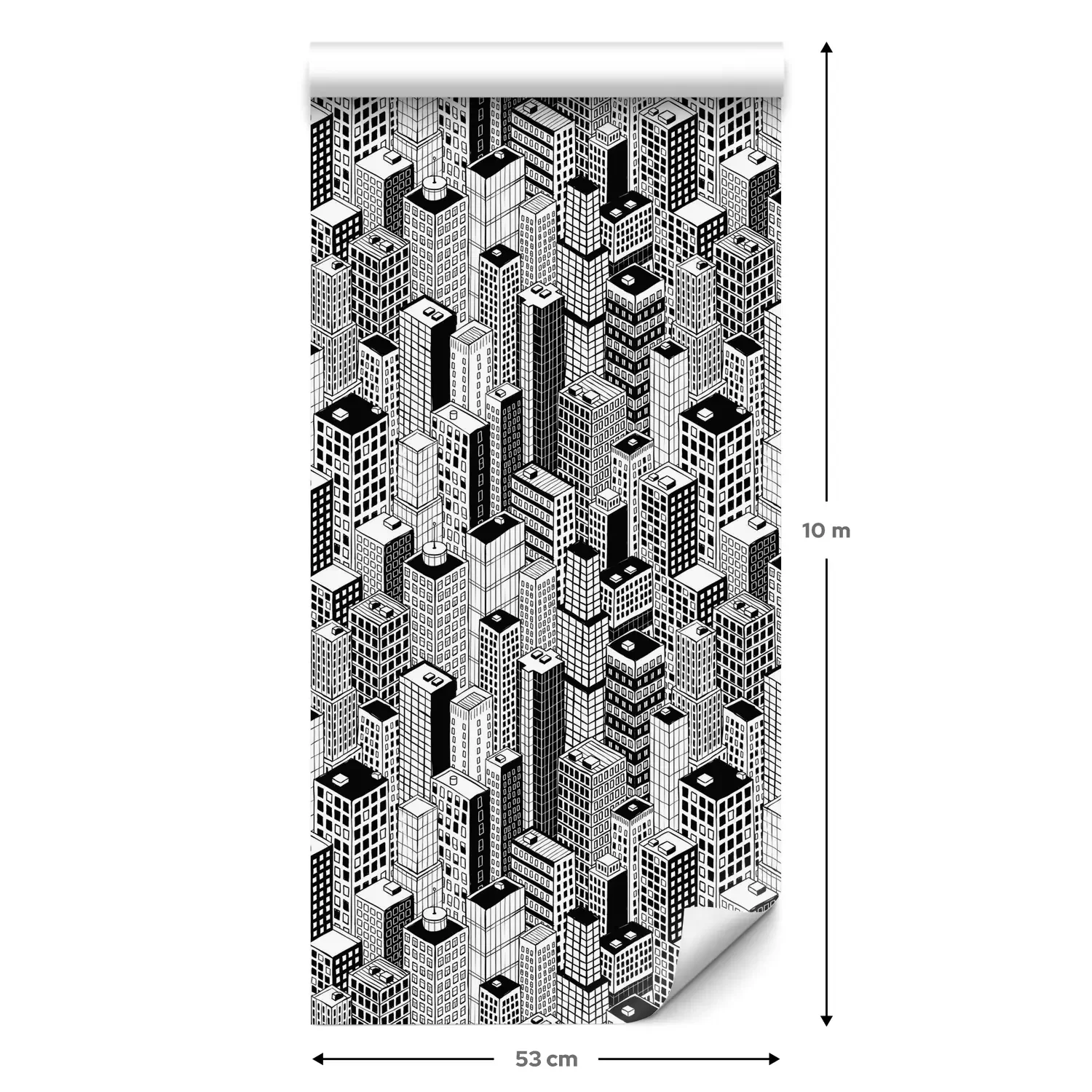 Eine Standard-Tapetenrolle hat die Maße 0,53 m x 10 m und deckt eine Wandfläche von etwa 5 m² ab.