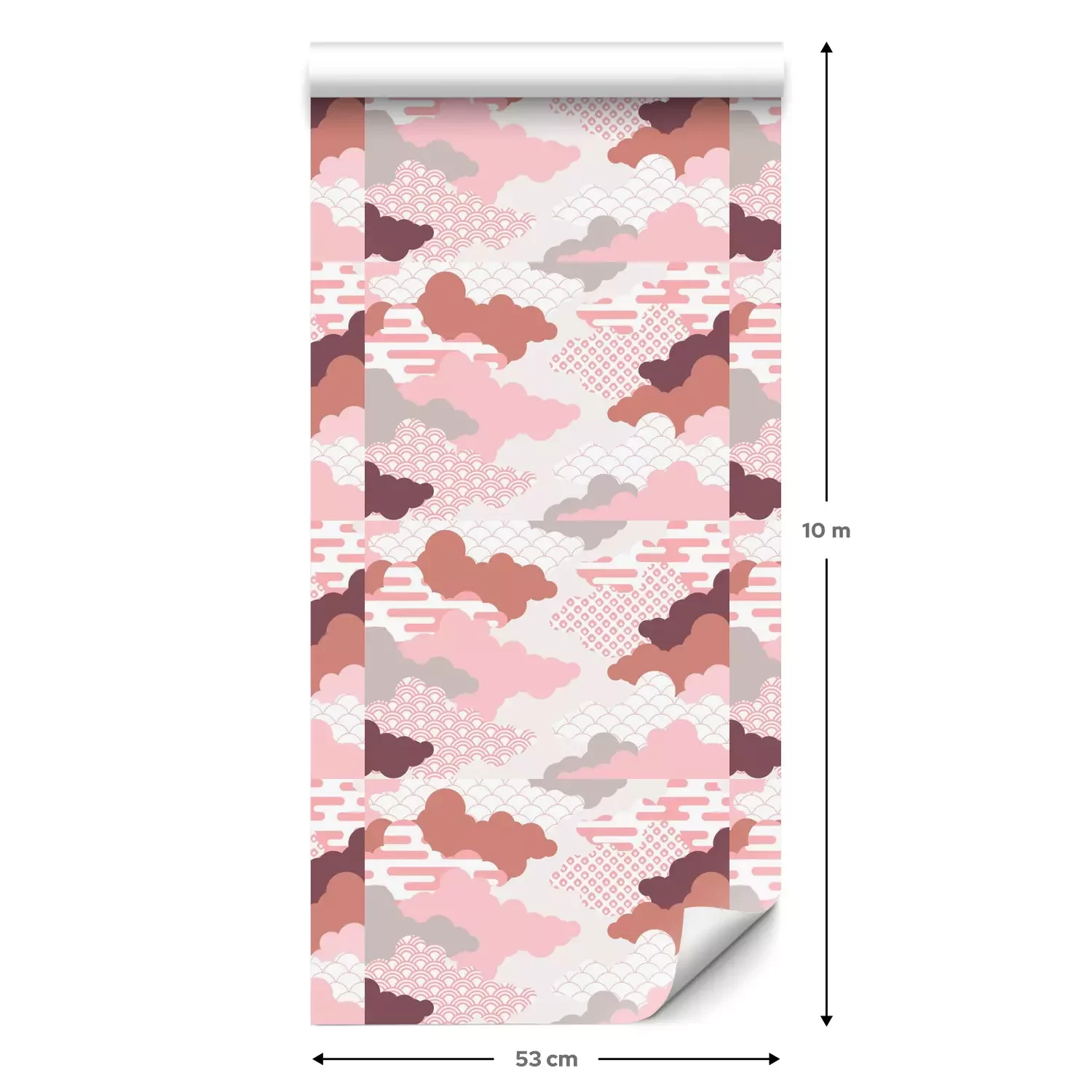 Eine Standard-Tapetenrolle hat die Maße 0,53 m x 10 m und deckt eine Wandfläche von etwa 5 m² ab.