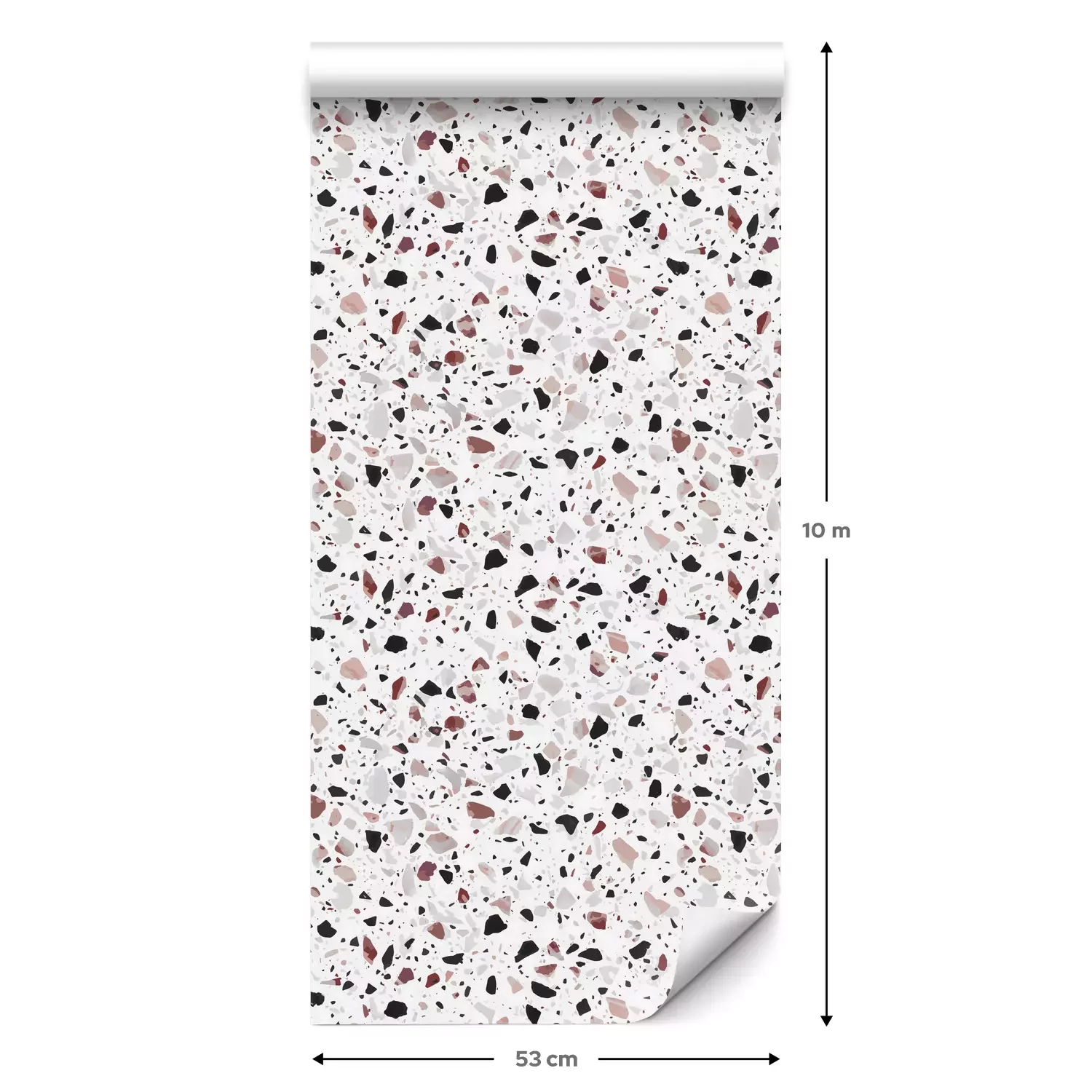 Eine Standard-Tapetenrolle hat die Maße 0,53 m x 10 m und deckt eine Wandfläche von etwa 5 m² ab.