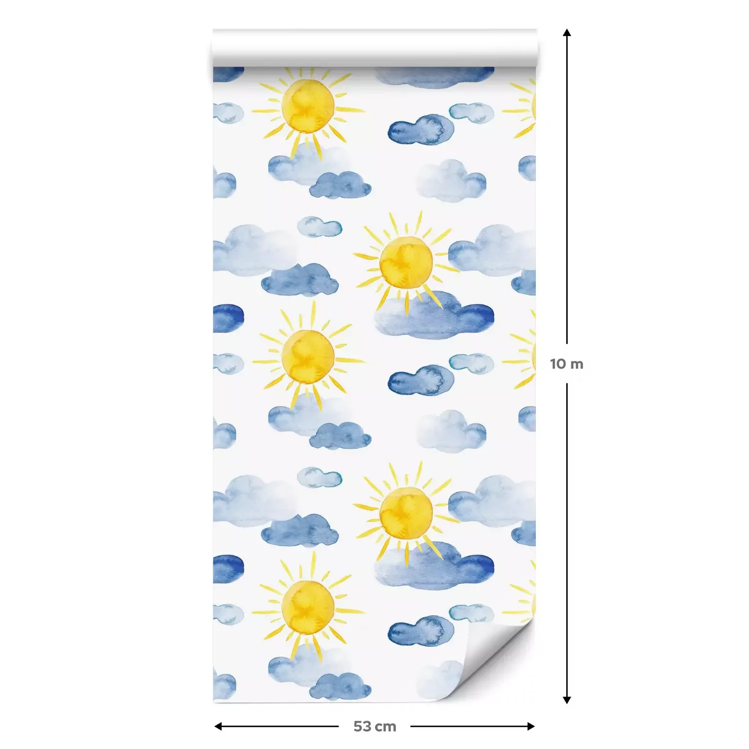 Eine Standard-Tapetenrolle hat die Maße 0,53 m x 10 m und deckt eine Wandfläche von etwa 5 m² ab.